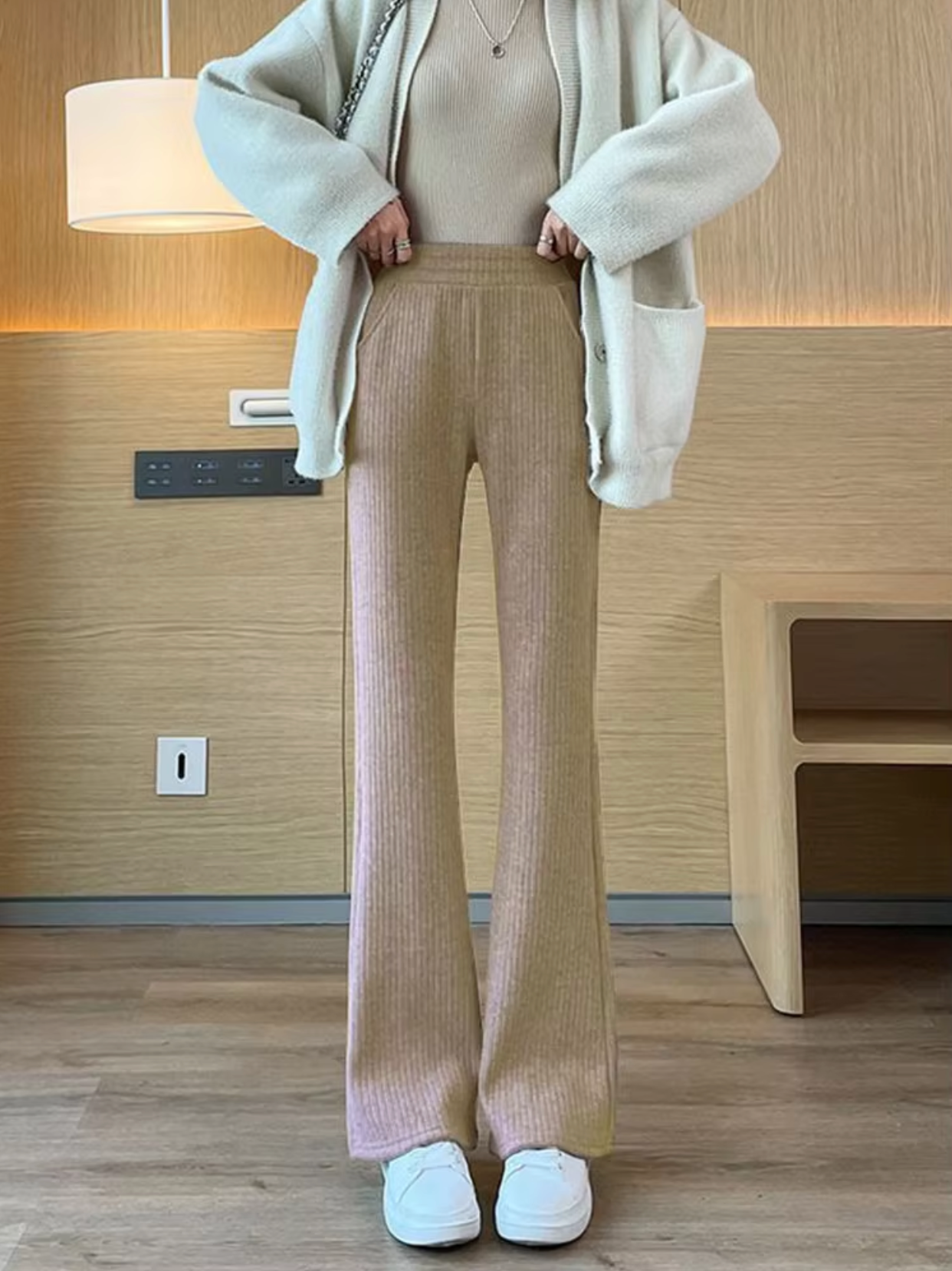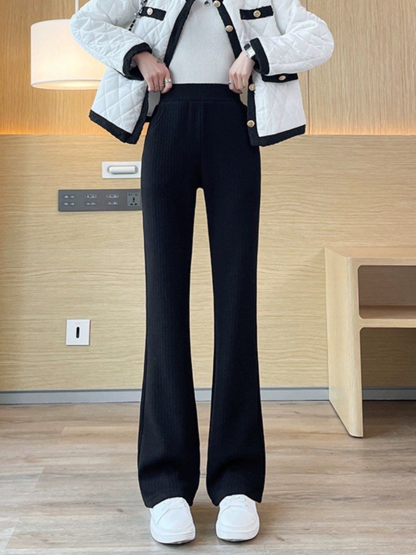 The fabric offers excellent insulation, making it ideal for stylish comfort in winter. With their elegant flare and rich texture, these trousers are suitable for both casual and sophisticated looks.