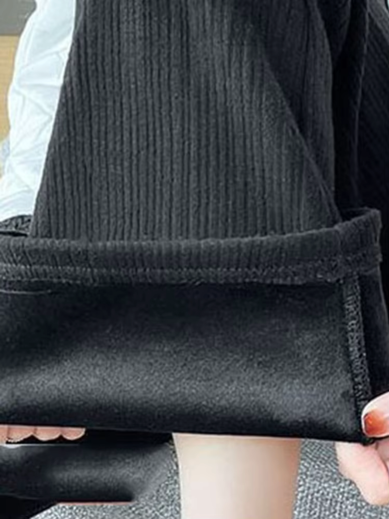 These winter-ready flared trousers are made from a mix of high-quality, durable fabrics and feature a plush velvet lining for extra warmth and softness against the skin. With a high-waisted, slim silhouette, these trousers offer a flattering look and will keep you warm on colder days.