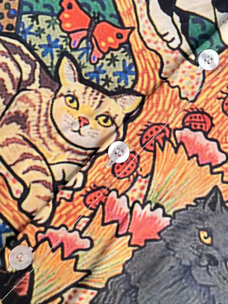 This playful and artistic short sleeve shirt is made of lightweight, breathable, high-quality material for a comfortable wearing experience. The vibrant, whimsical cat print adds a touch of charm and personality to your casual wardrobe .