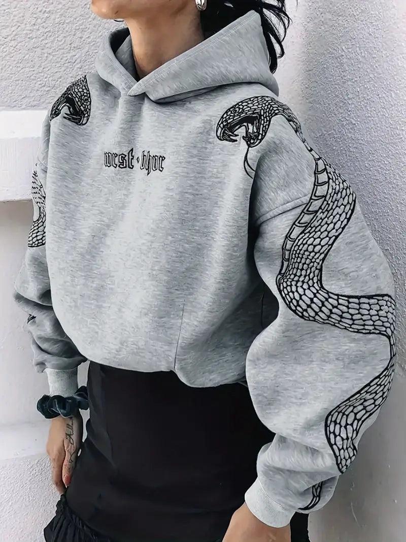 Featuring graphic snake prints on the sleeves and chest, it will add a touch of style to your wardrobe . The drawstring hood and ribbed cuffs ensure a comfortable fit and are ideal for casual outings or for colder weather .