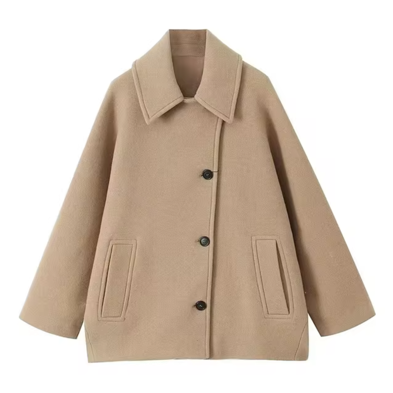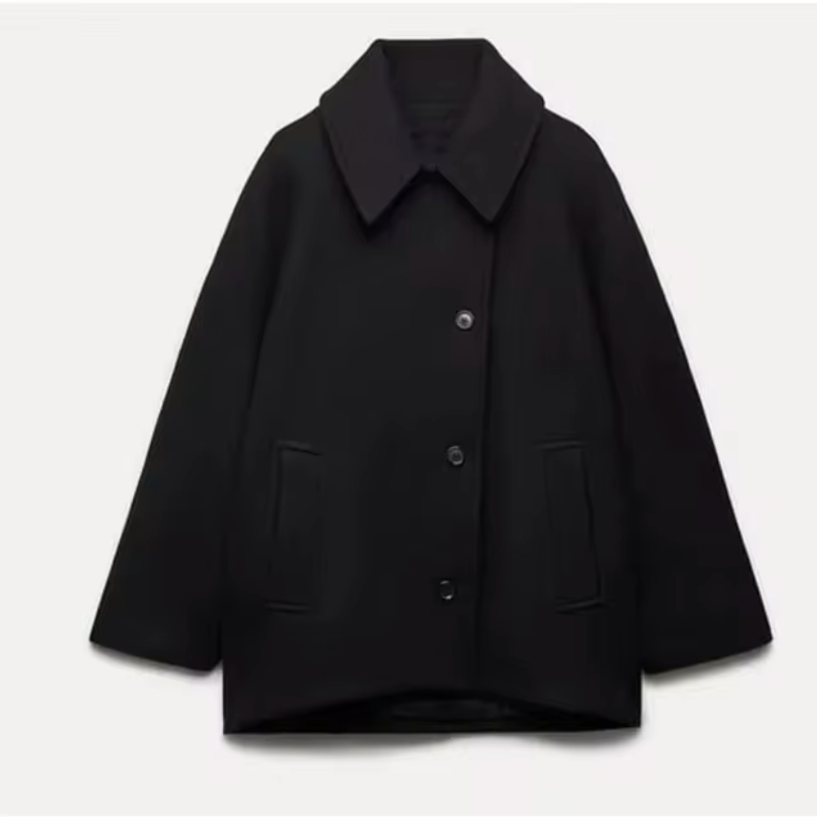 This fashionable lapel wool coat for women is crafted from a luxurious wool blend and offers warmth and elegance for cool spring days. The single-breasted design, long sleeves and oversized fit offer a relaxed yet elegant silhouette that's perfect for layering over casual or dressy outfits.