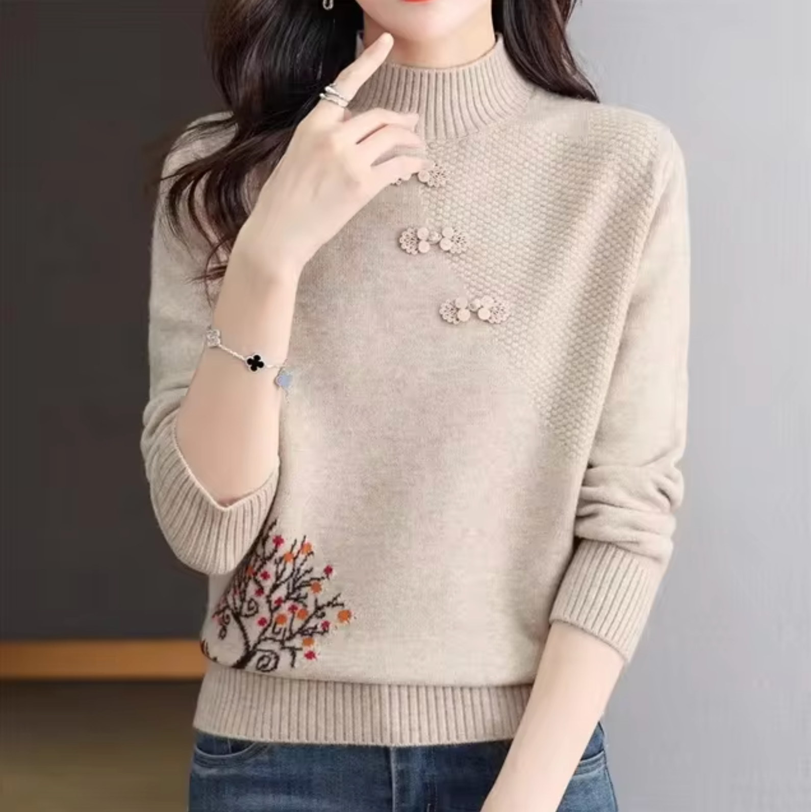 This sweater is comfortable to wear in autumn and winter and is an essential basic for casual, chic outfits. This sweater is best suited for dry, cool days .