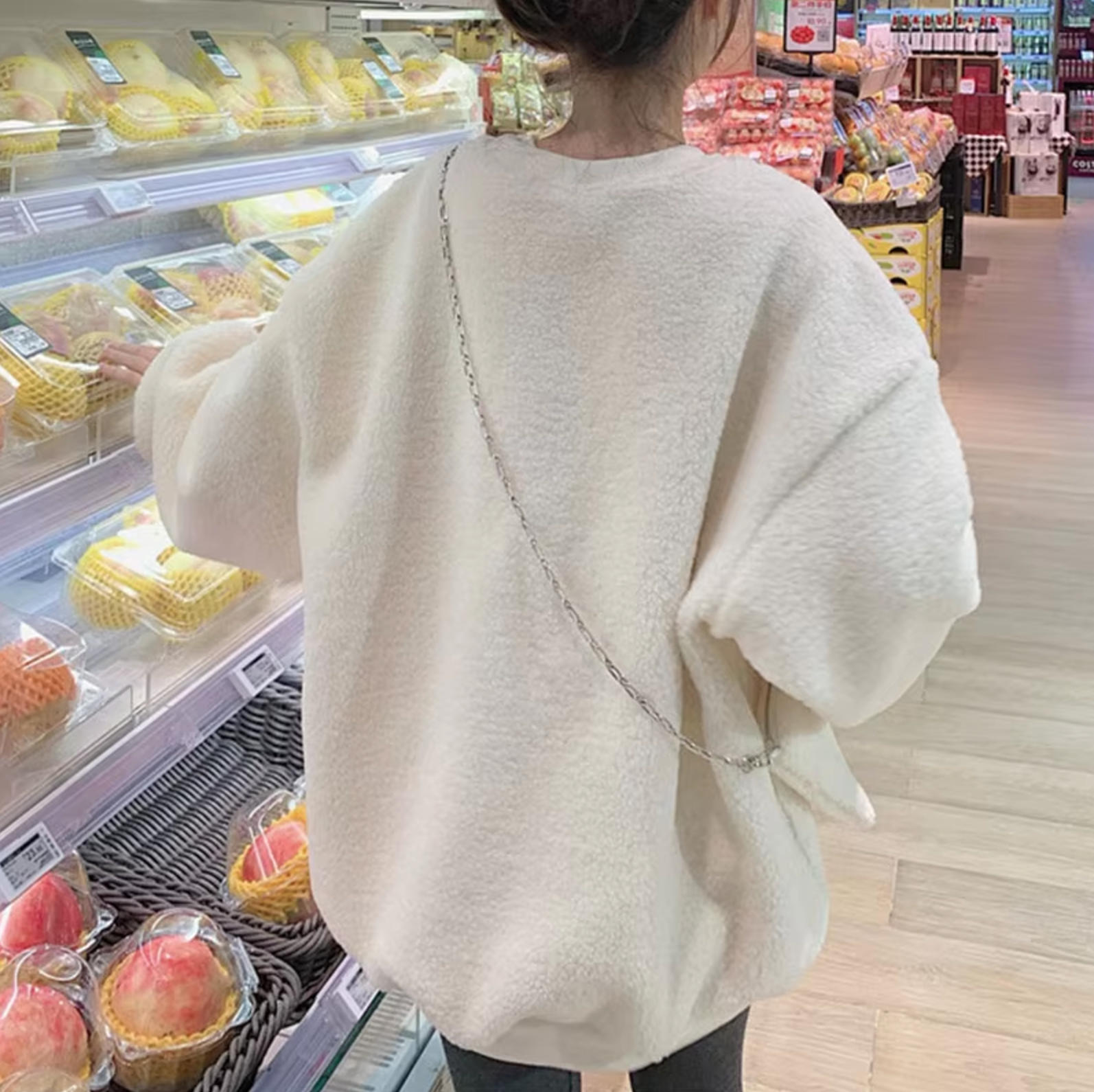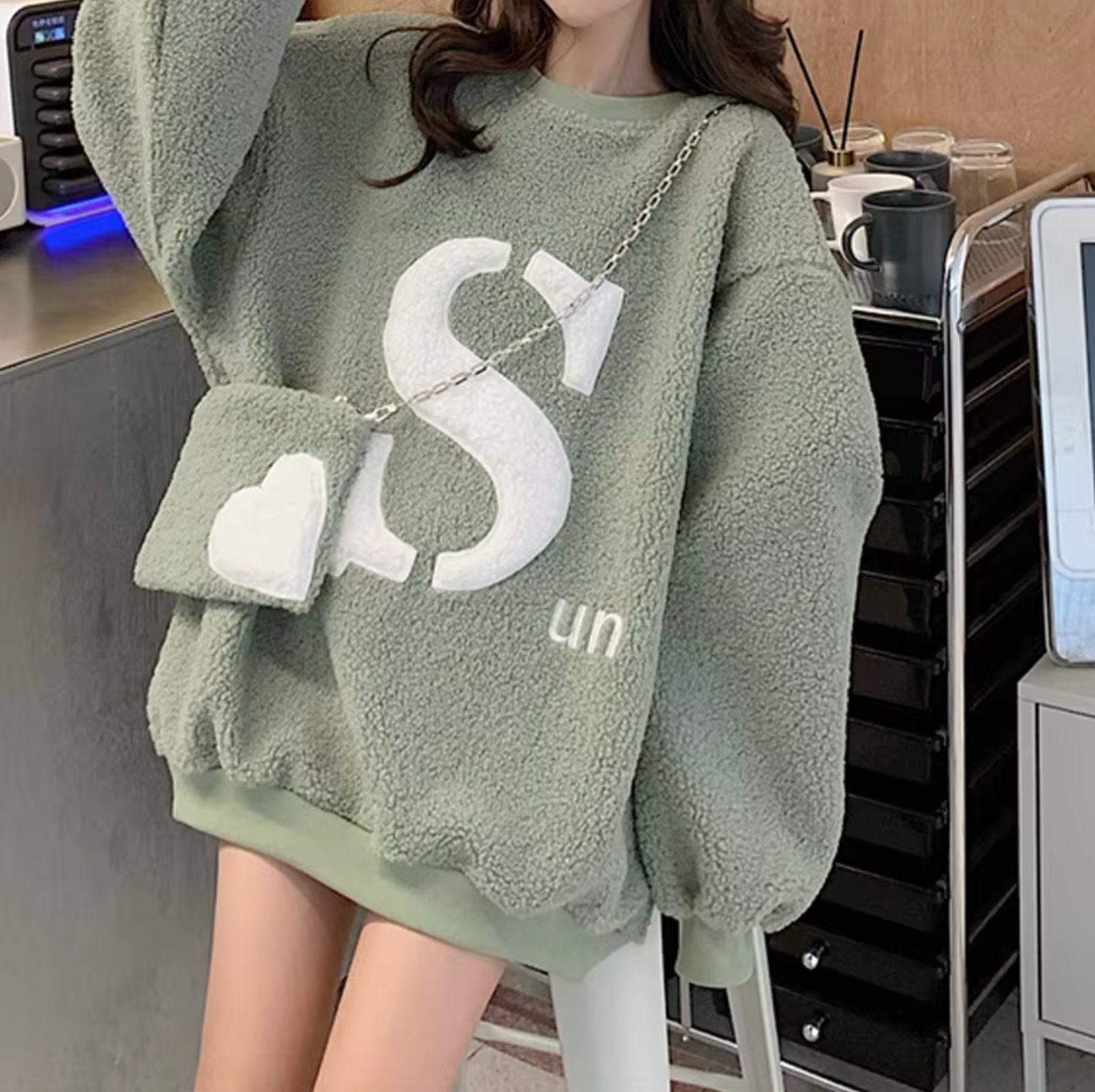 Made from a blend of premium soft lambswool and durable fabric, this women's sweatshirt is designed for maximum comfort and warmth throughout the fall and winter. With its loose fit and cozy long sleeves, it's perfect for layering or wearing on its own on colder days.