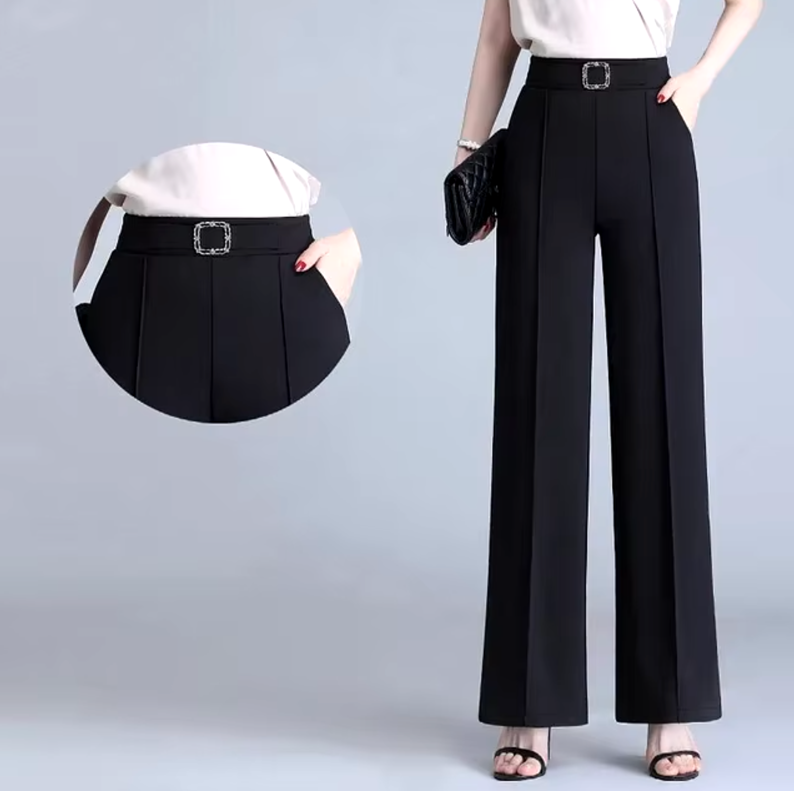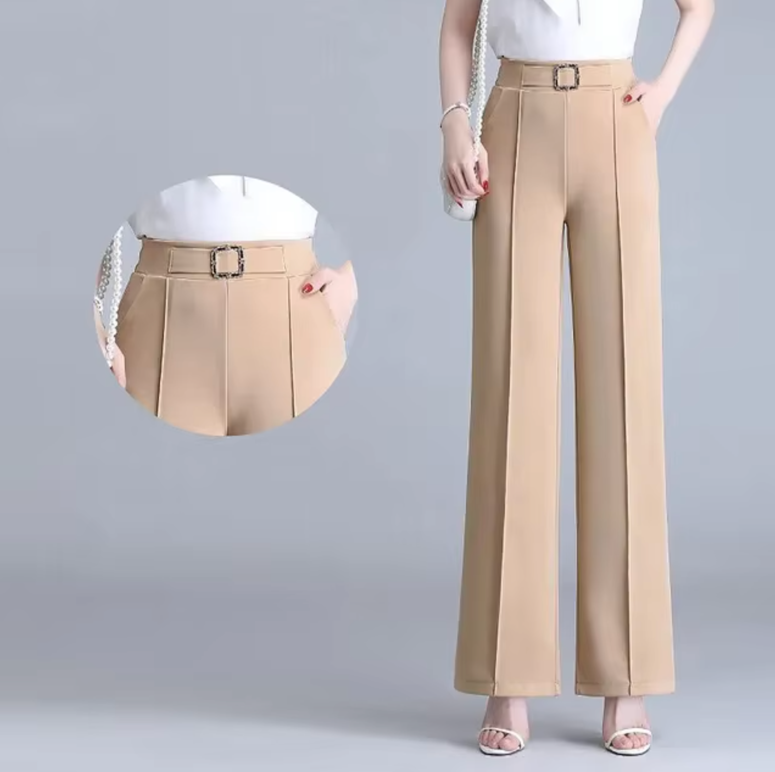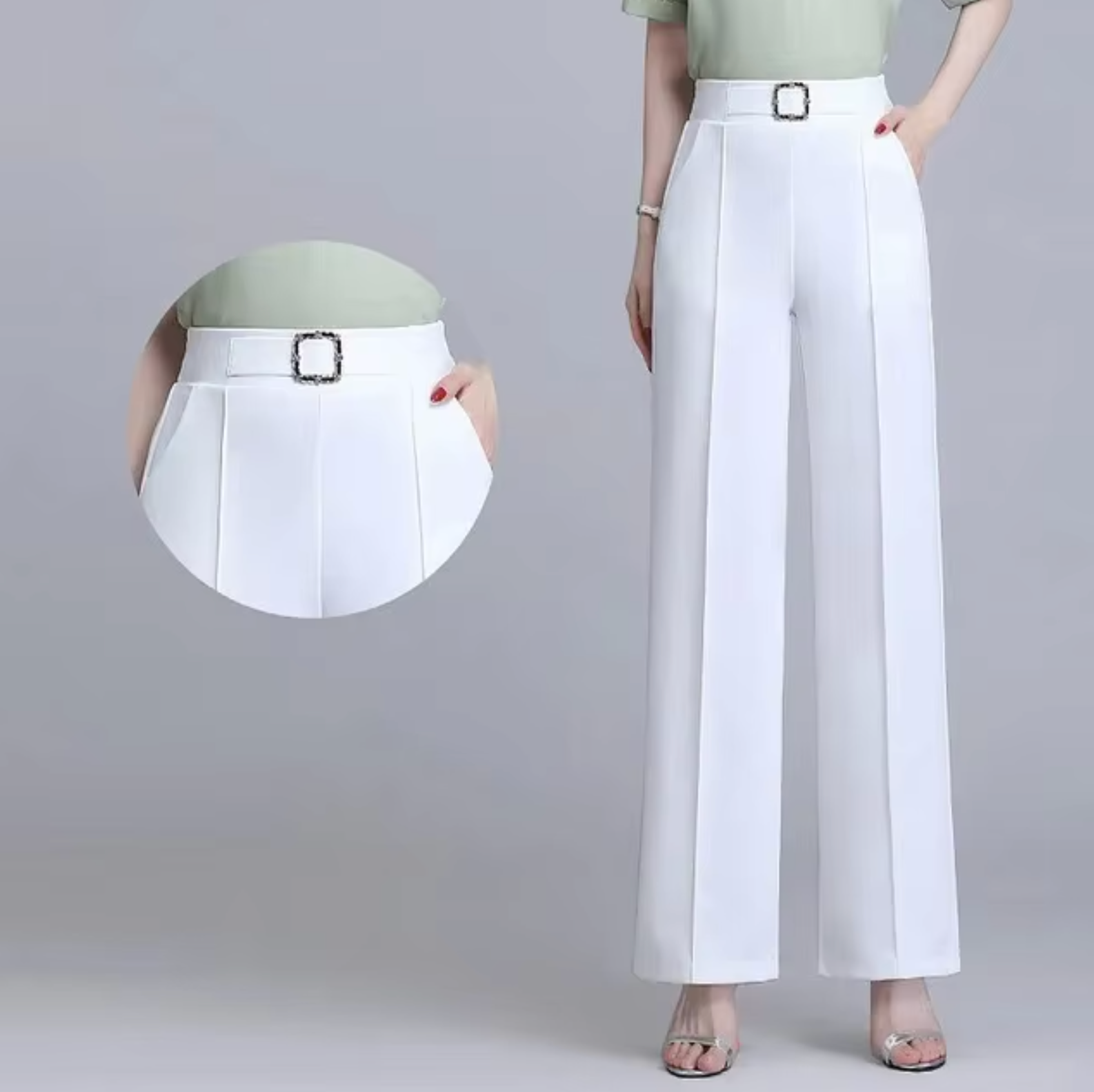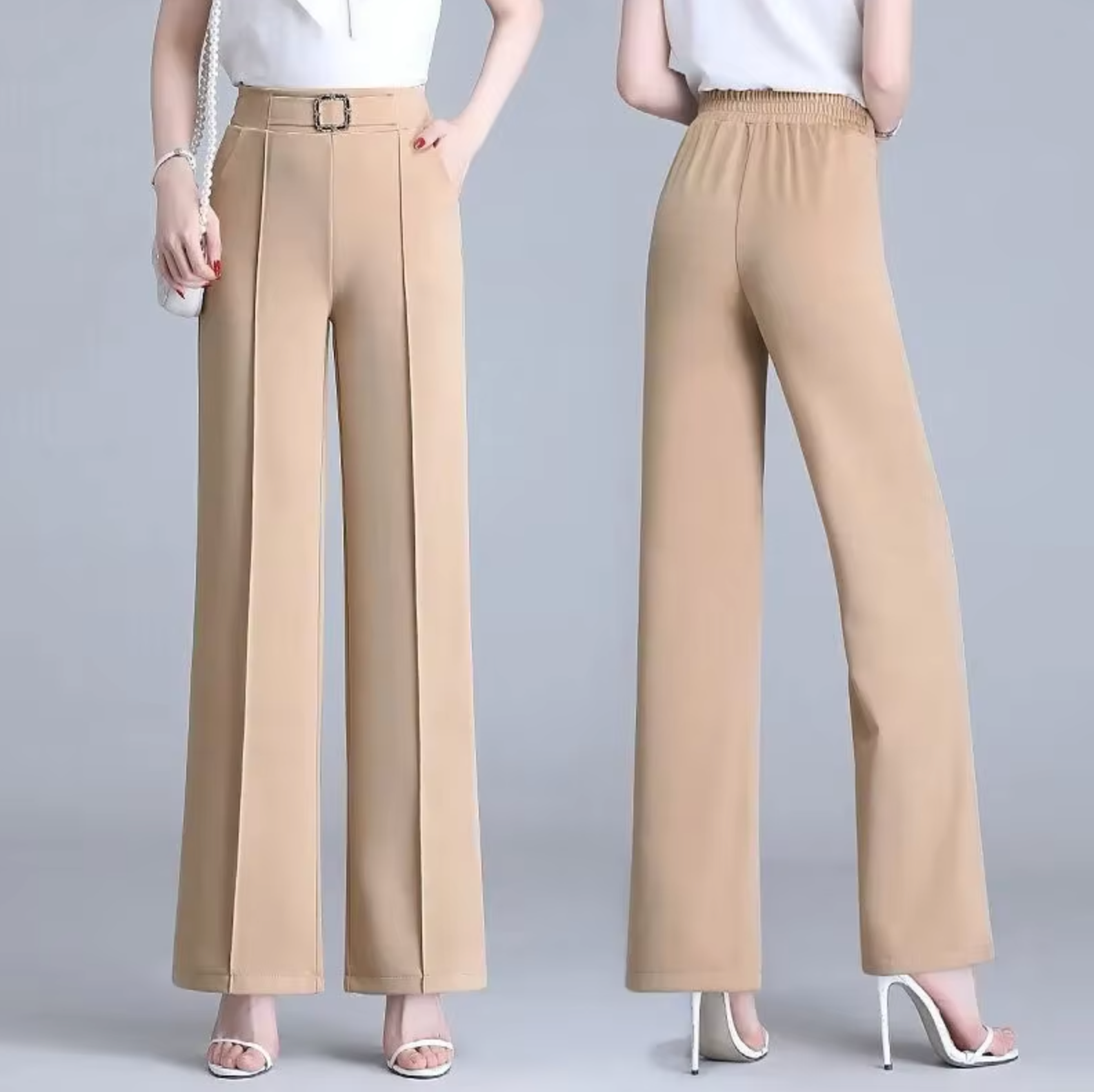 These high-waisted wide-leg pants are crafted from luxurious ice silk for a soft, cooling feel that's perfect for summer. The sleek straight-leg design creates a flattering and relaxed fit, while the elastic waistband ensures all-day comfort and freedom of movement .