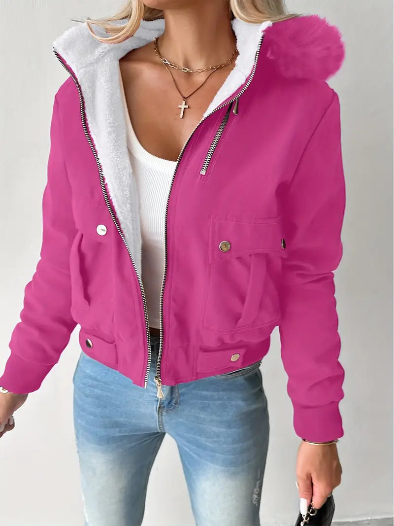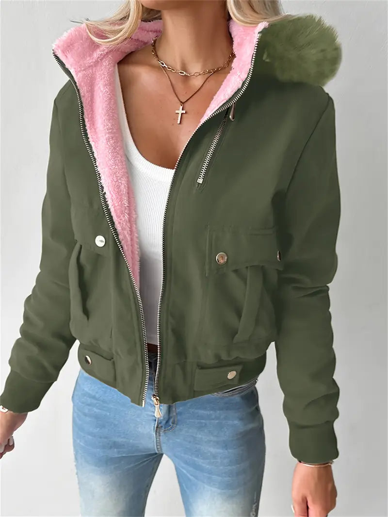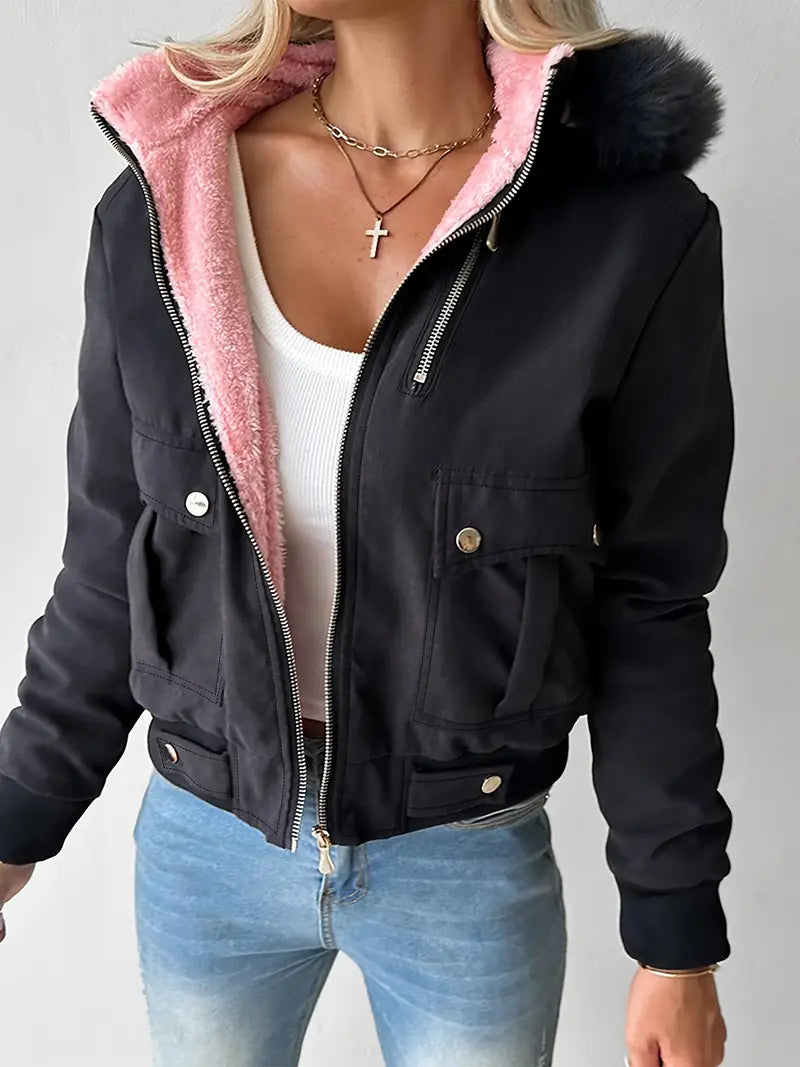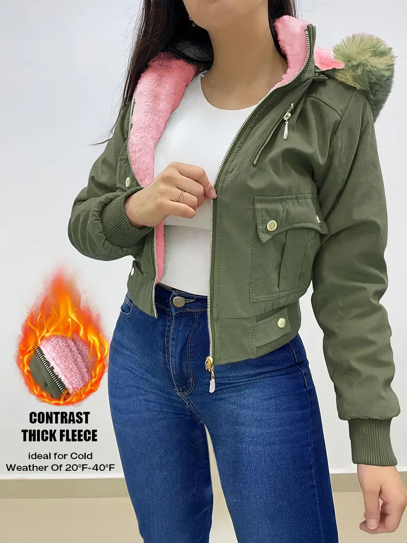 Made from a durable cotton blend and a thick , contrasting fleece lining, this cropped jacket provides exceptional warmth .
