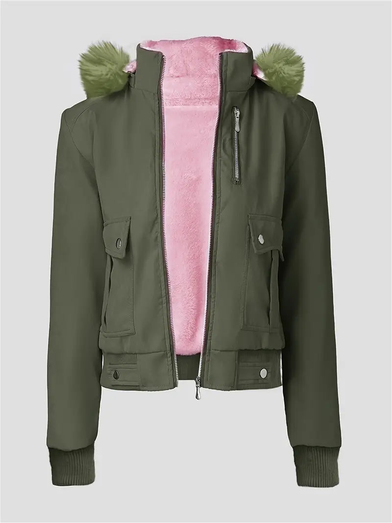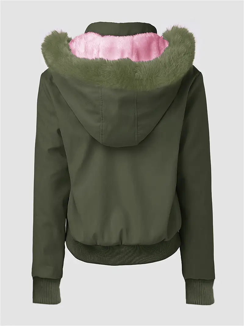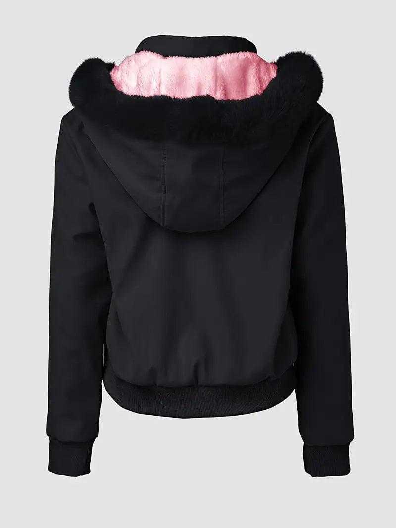 Designed for cold temperatures from 20°F to 40°F, this jacket features a removable fur-lined hood, ribbed cuffs , and multiple functional pockets for added comfort.