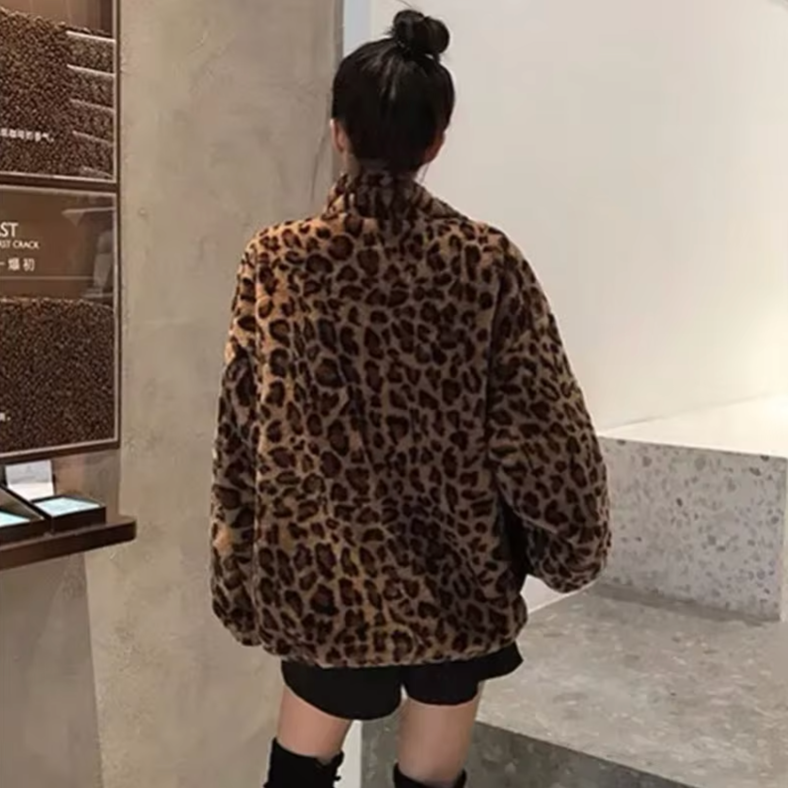 Breigh – Leopard Print Zip Up Fur Jacket