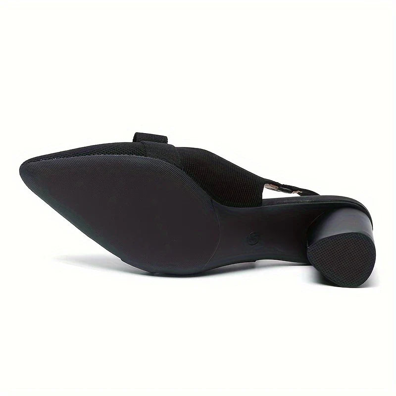 These pointed slingback heels feature a chic bow detail and a comfortable block heel for polished elegance . The mid-height heel provides stability , while the slim slingback strap ensures a secure fit.