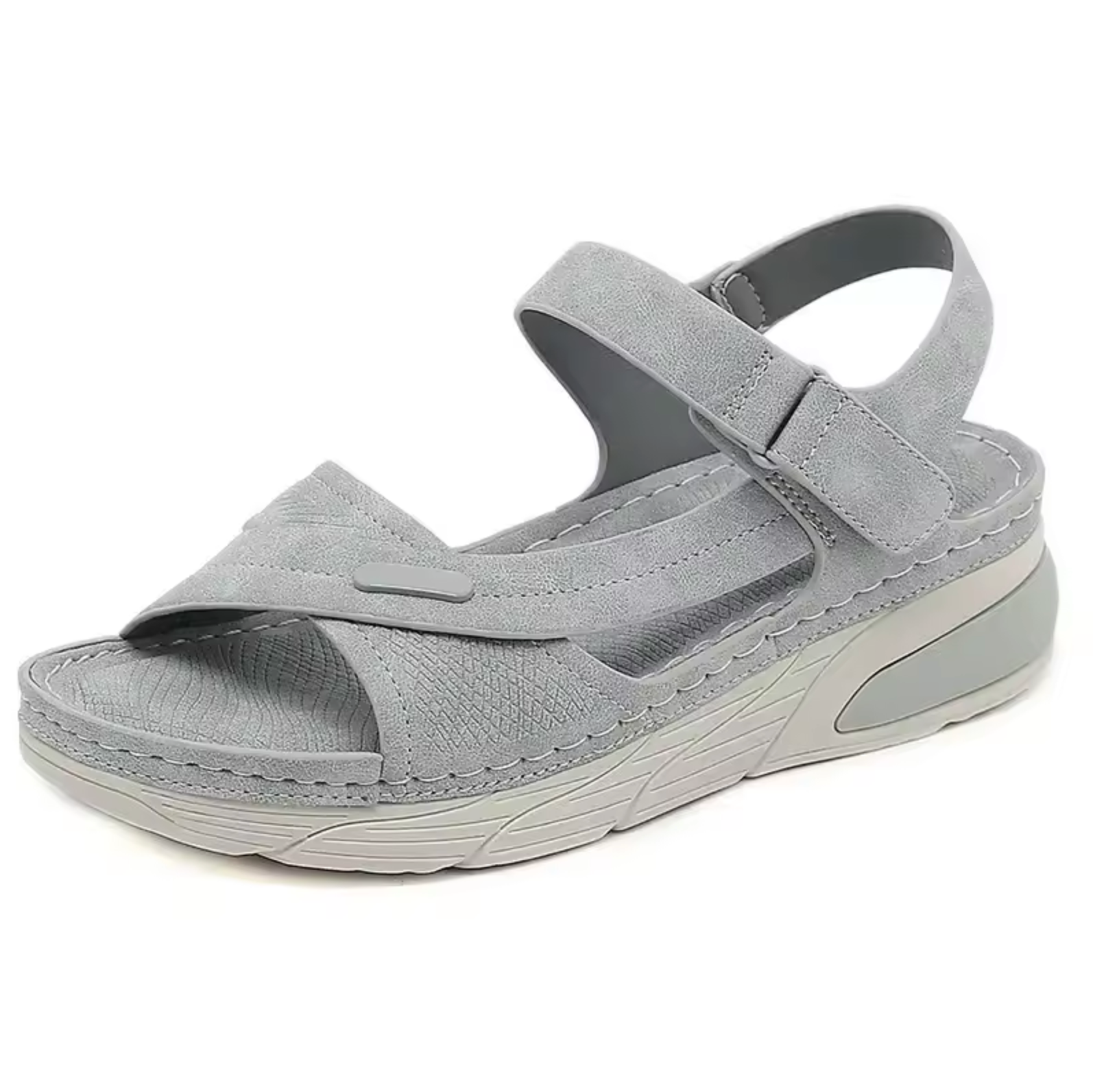 These cushioned, orthopedic sandals offer all-day comfort . They're designed to be both stylish and supportive. The breathable mesh and soft suede upper provides excellent ventilation while remaining lightweight—perfect for warmer days. The adjustable hook-and-loop straps ensure a customized fit, securing your foot with ease, and allowing for quick on and off.