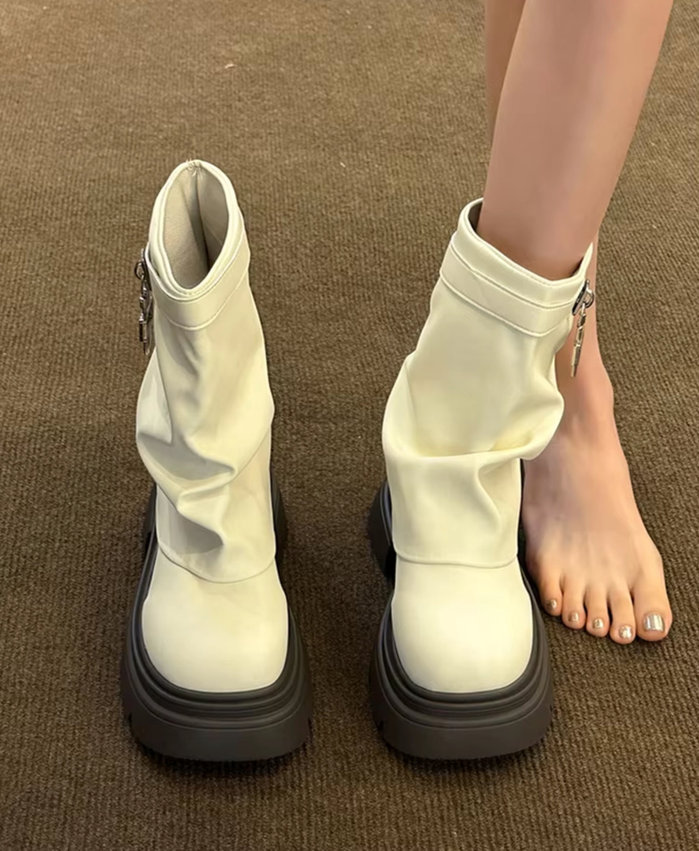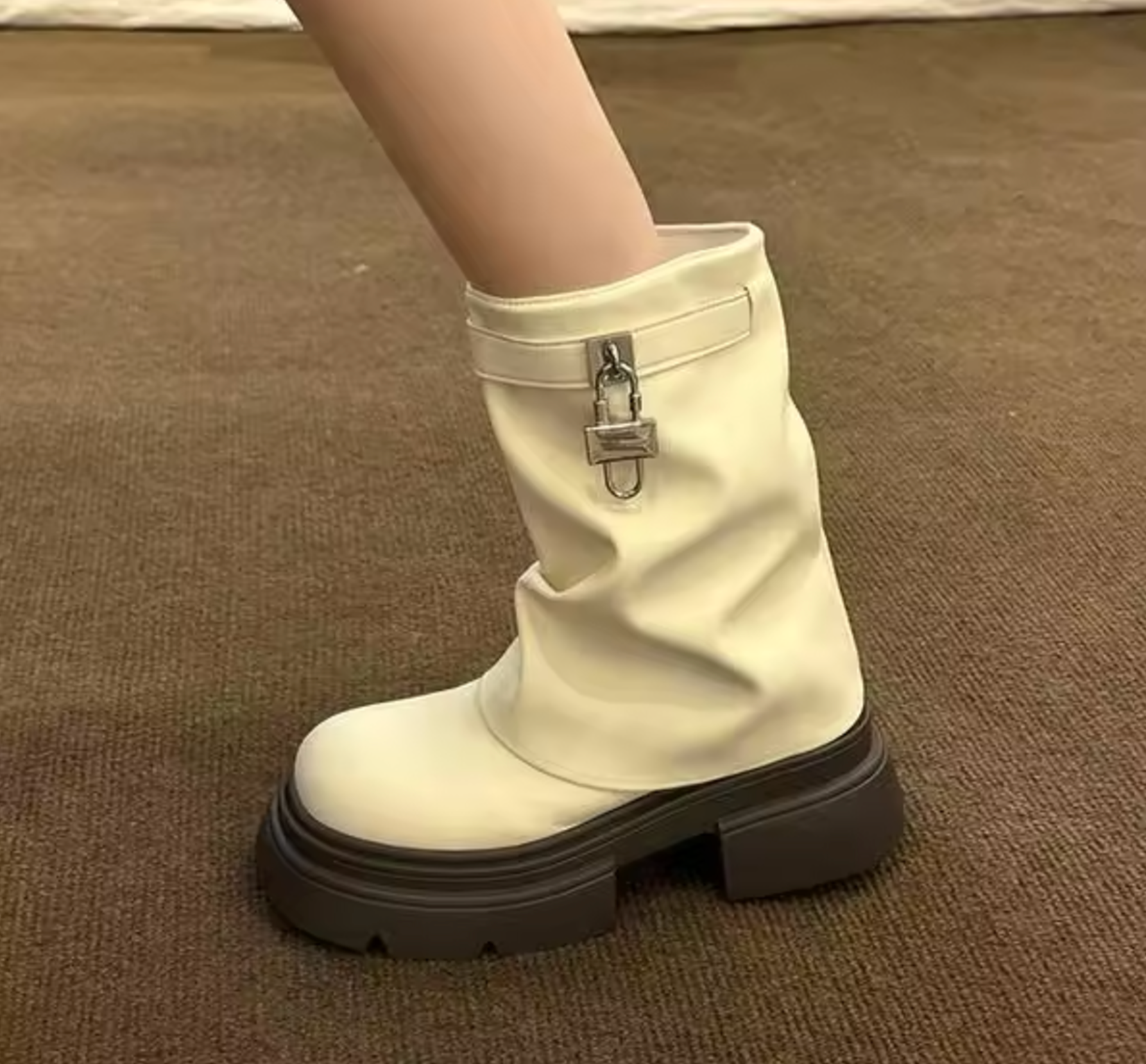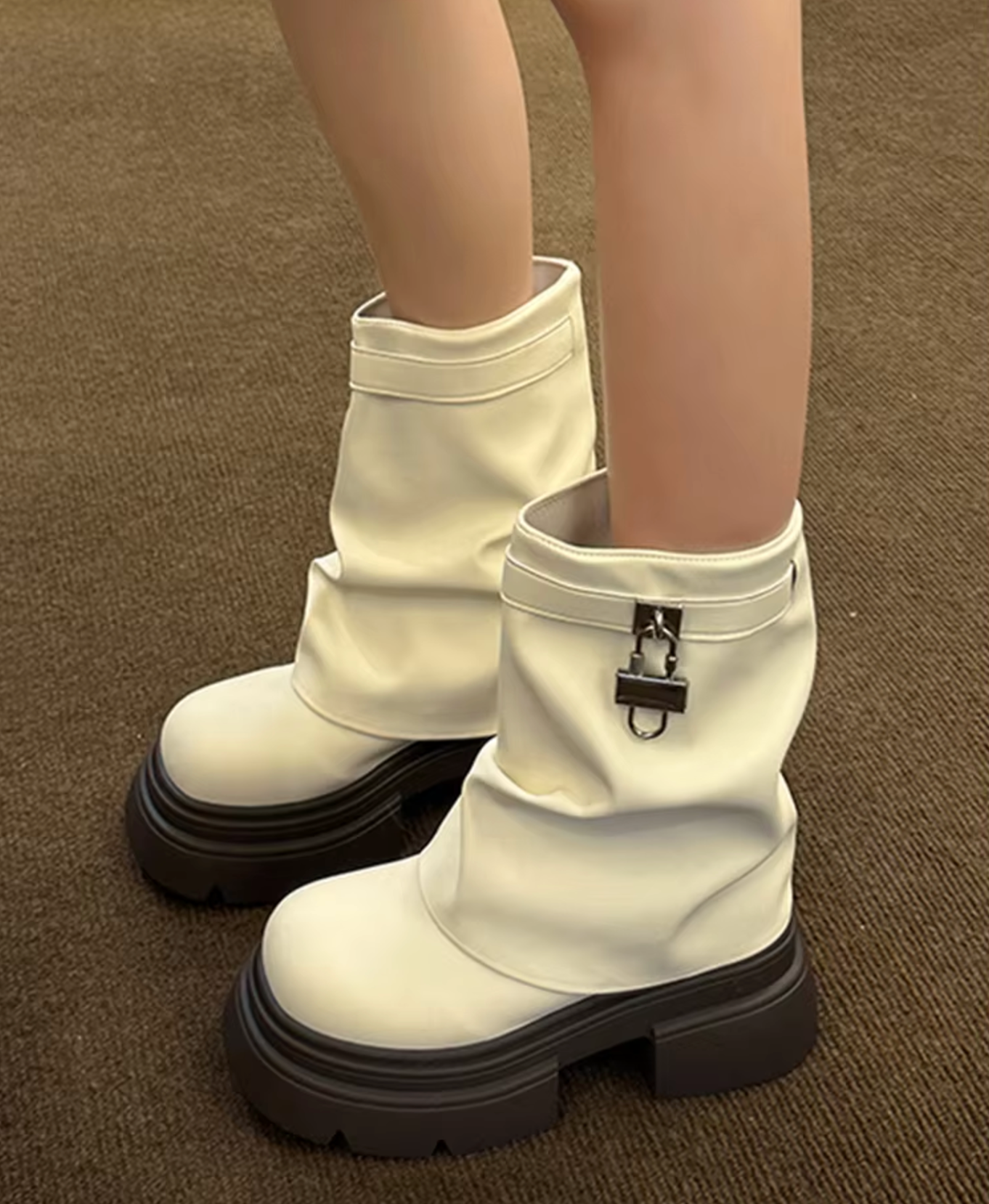These stylish mid-calf boots are crafted from smooth leather for a modern and edgy look. The casual design creates a relaxed yet chic look, while the chunky platform soles provide excellent durability and traction.