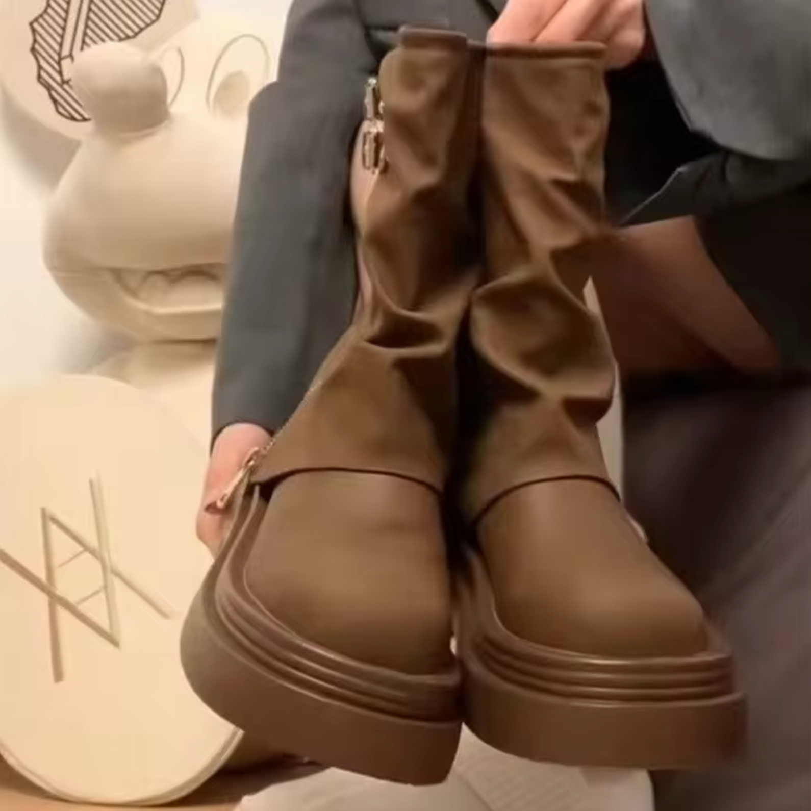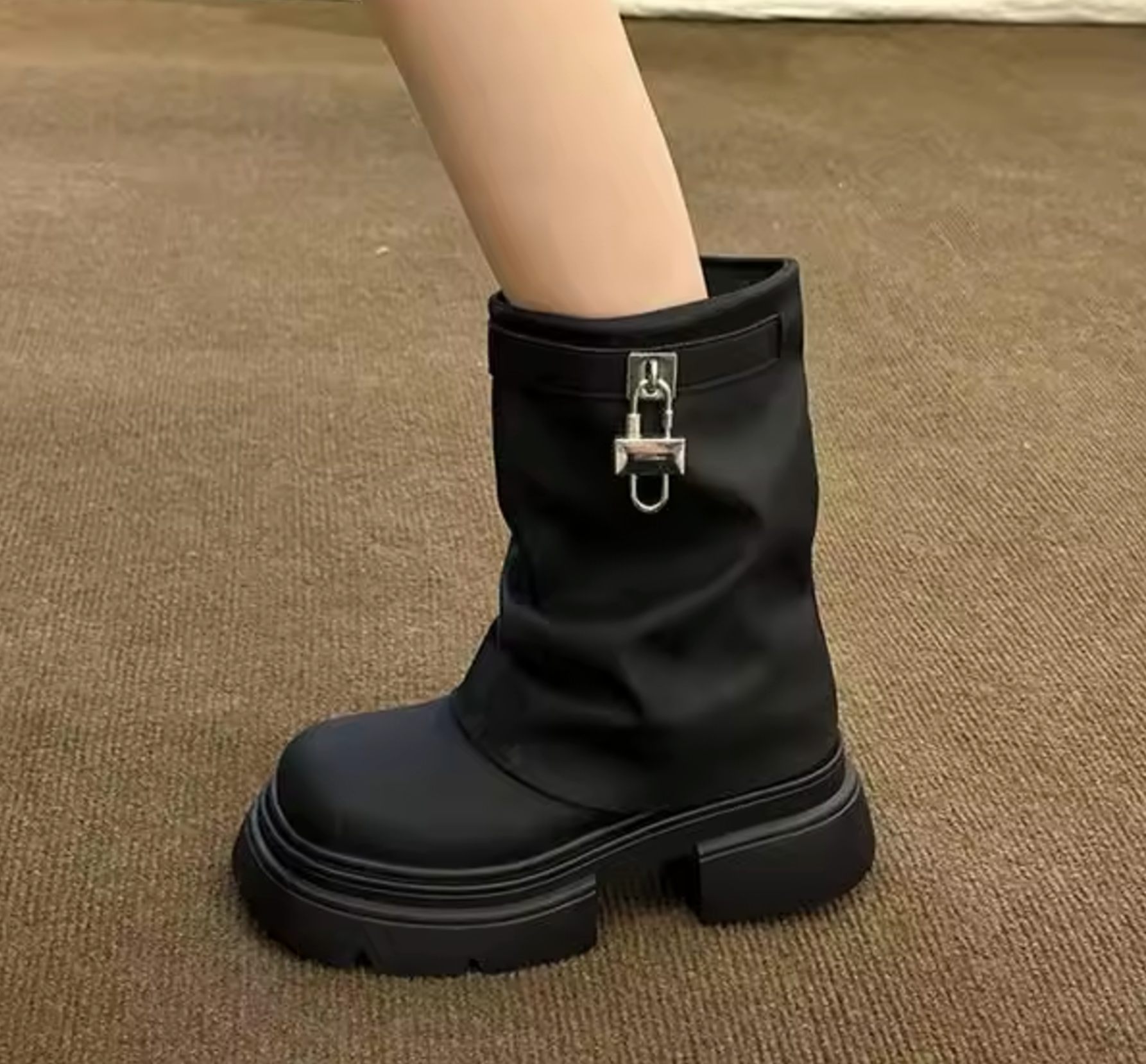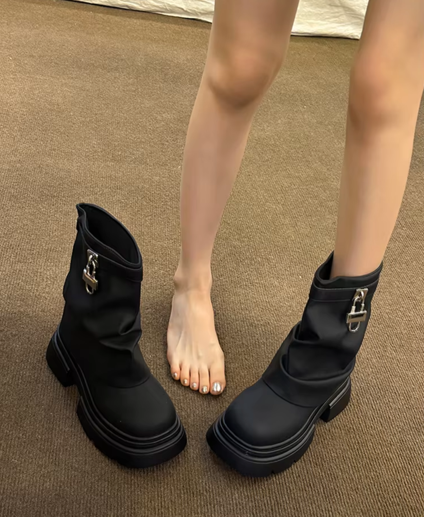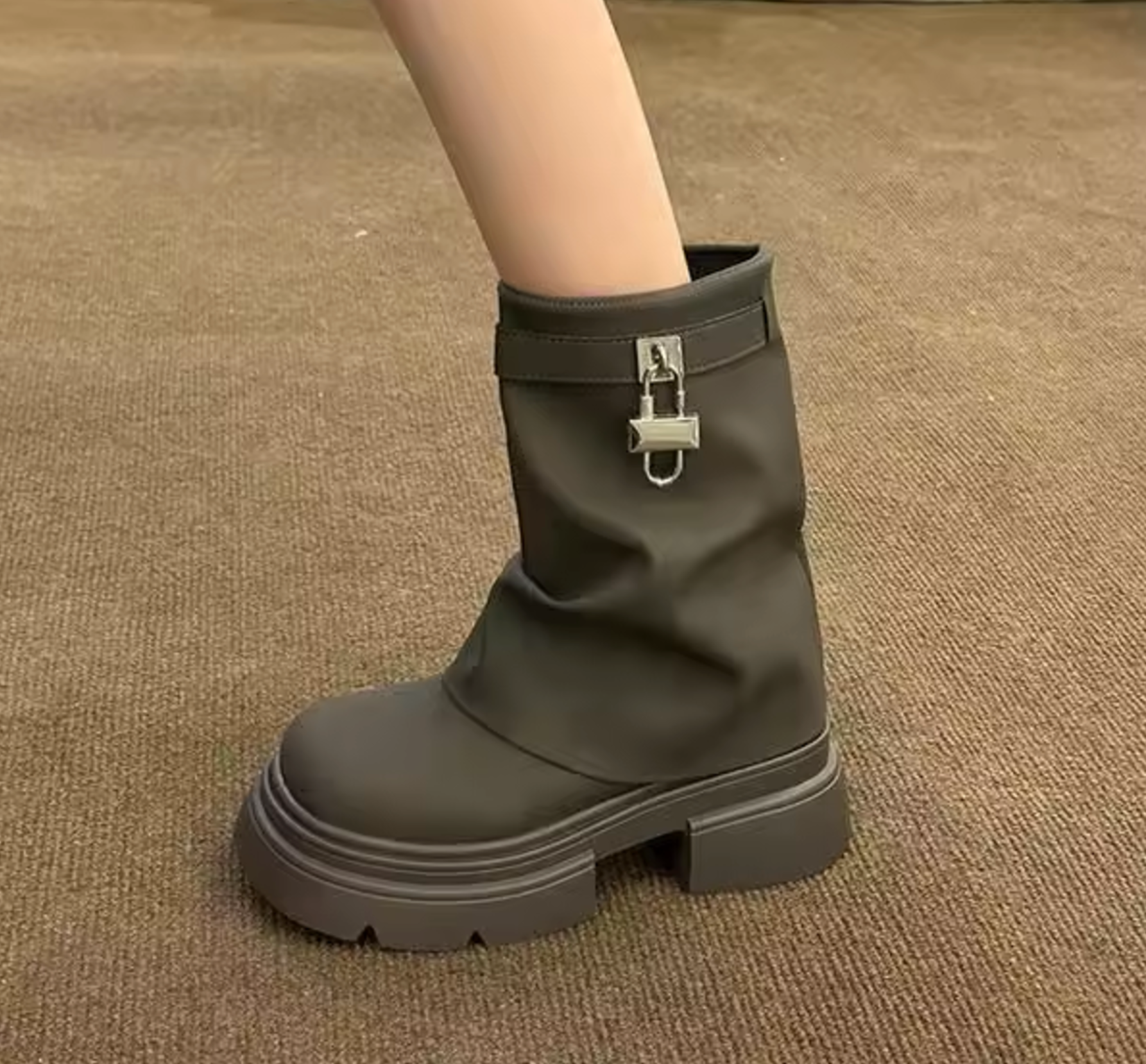 These stylish mid-calf boots are crafted from smooth leather for a modern and edgy look. The casual design creates a relaxed yet chic look, while the chunky platform soles provide excellent durability and traction.