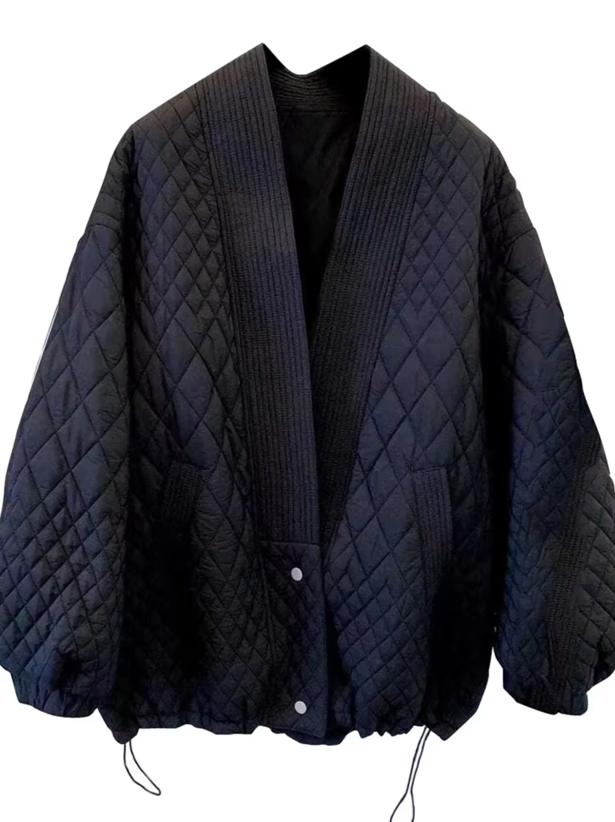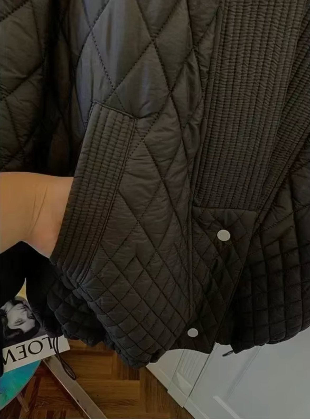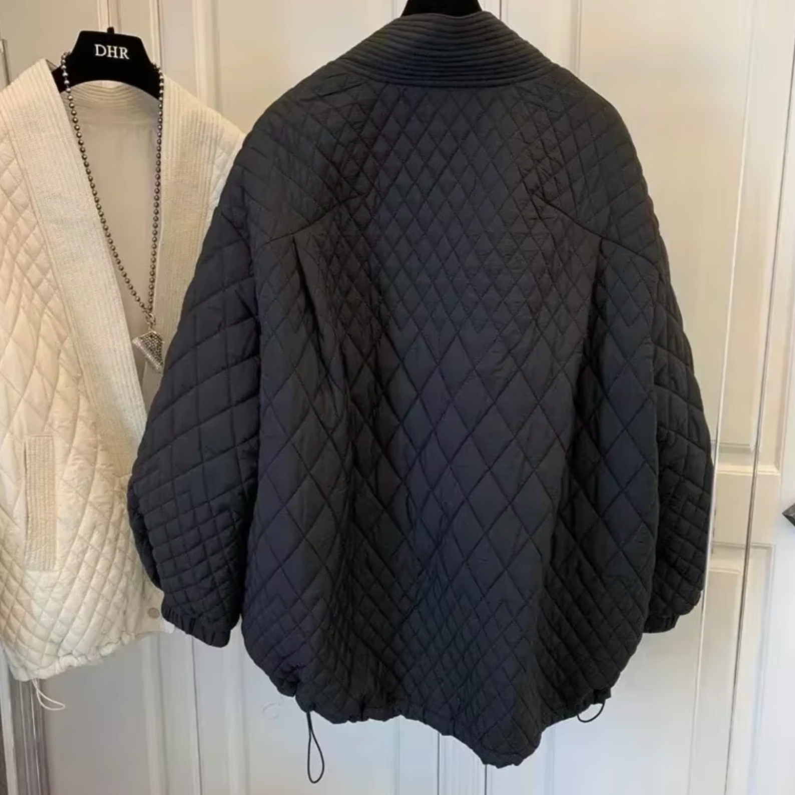 Combining warmth with style, this retro-style padded down jacket is made from high-quality , soft and insulating cotton padding . It features a chic diamond pattern and offers a flattering, waist-hugging fit that accentuates the figure without sacrificing comfort.