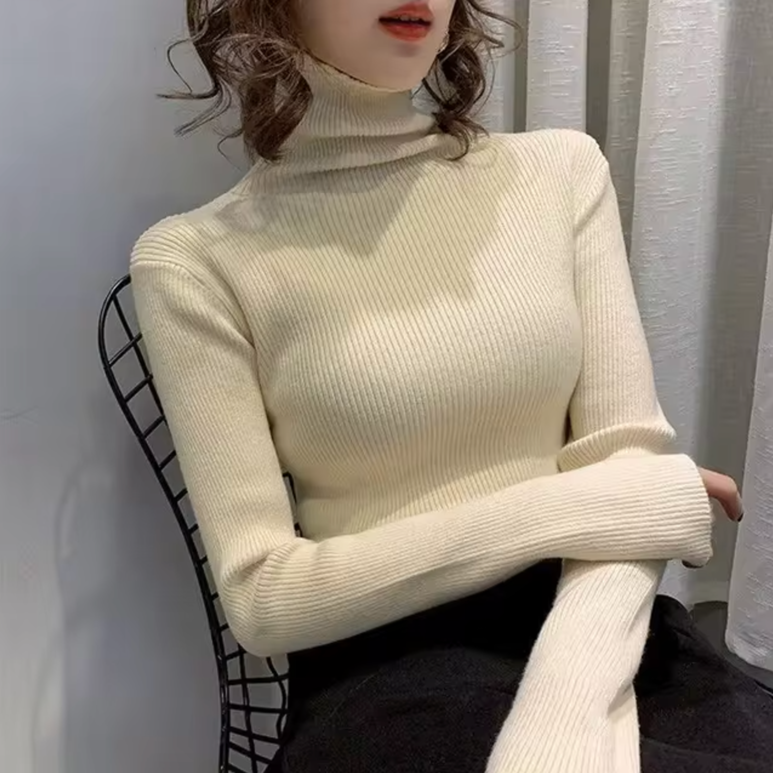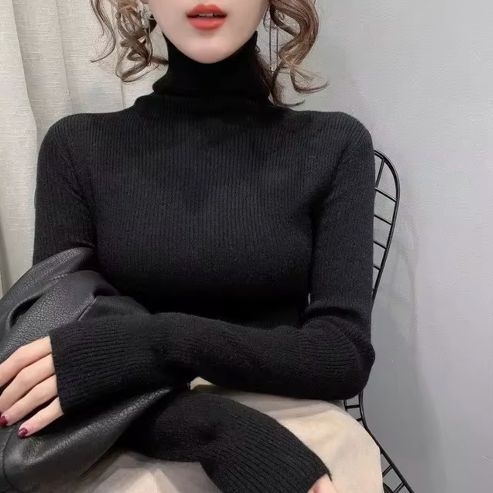 This elegant turtleneck sweater is made from a soft rib knit with a blend of high-quality cotton and a touch of elastane for a snug but flexible fit. The slim silhouette hugs the body elegantly and is ideal for layering or wearing on its own.