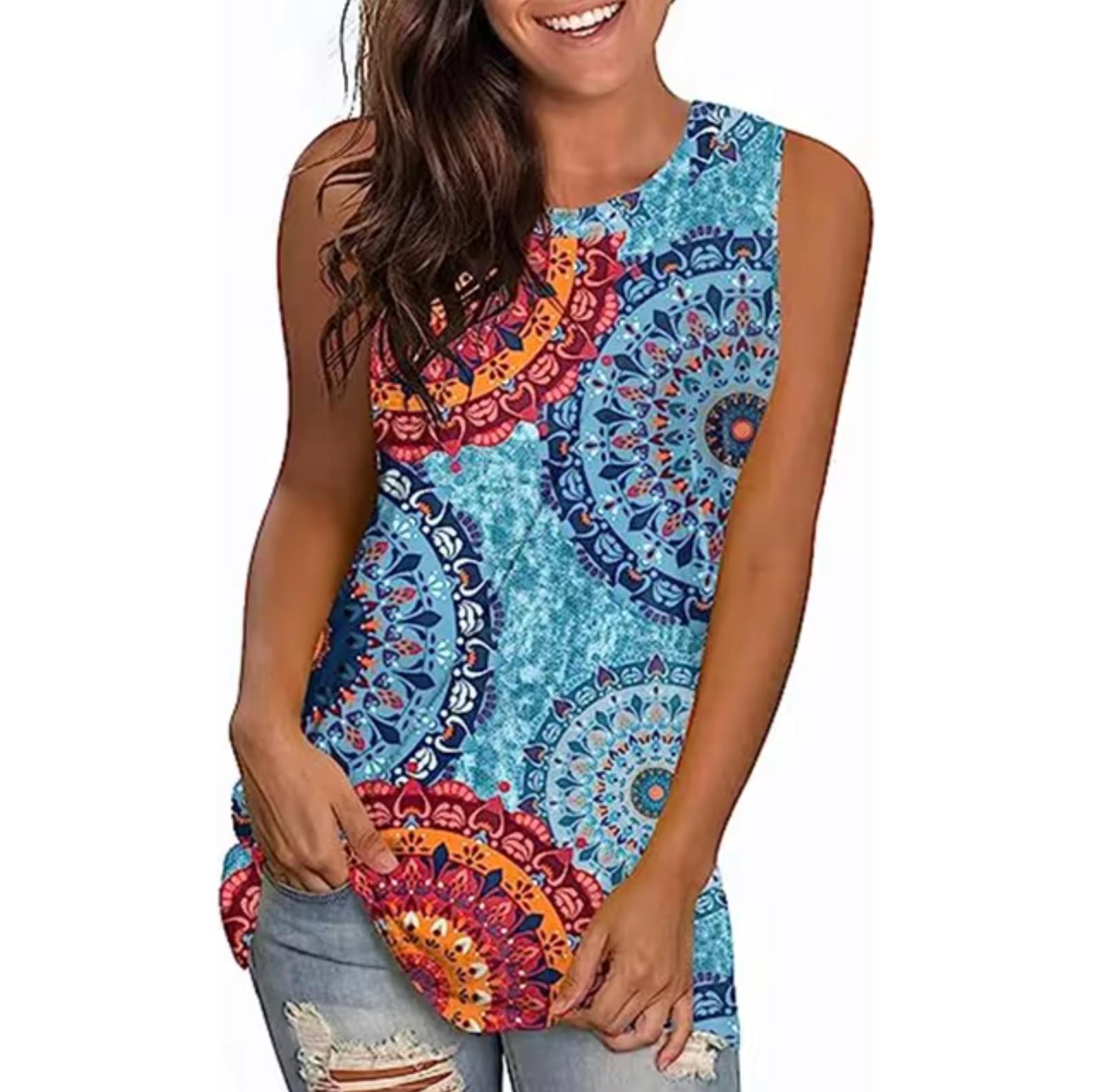 The loose fit and rounded hem give a flattering silhouette to any body type, while the sleeveless design keeps you cool and stylish. Ideal for everyday wear, summer outings or layering under a jacket for an evening out, this tank top is a must-have for your fashion collection. Mix and match the prints to express your personal style and enjoy the compliments you receive.