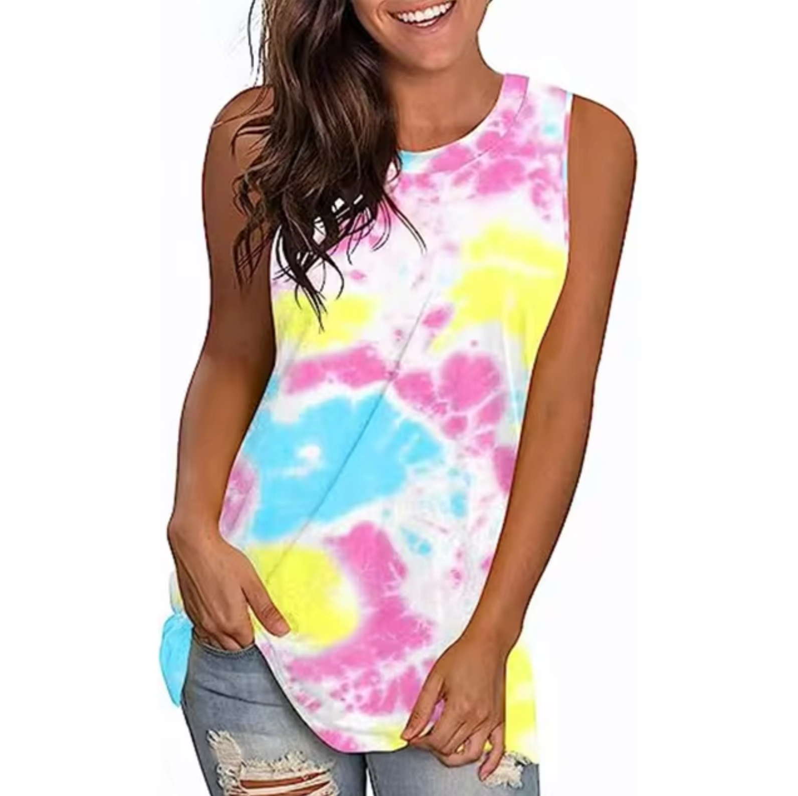 This versatile sleeveless tank top will enhance your casual wardrobe. Made from soft, breathable fabric, it offers all-day comfort - perfect for warm weather. Each design is a unique style statement that pairs effortlessly with your favorite jeans or shorts.