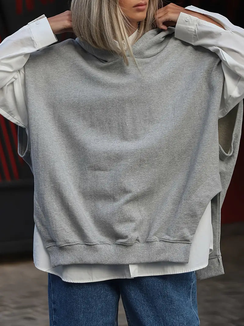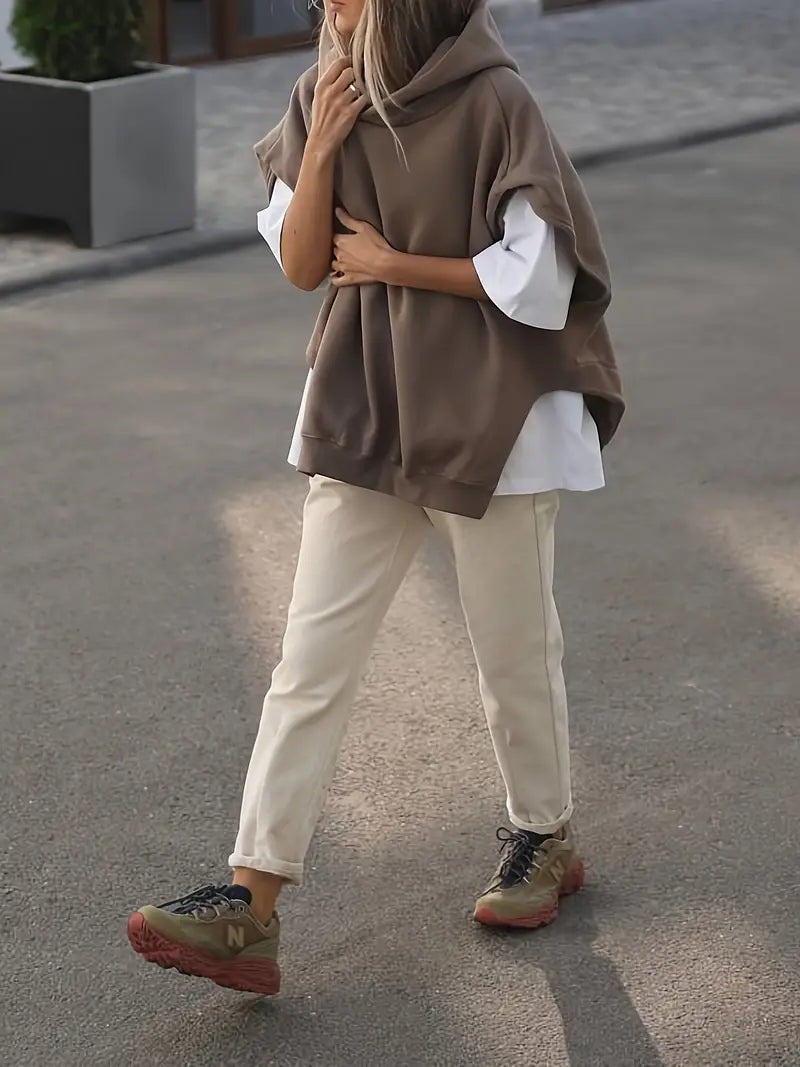 The lightweight material is perfect for leisure and transitional wear. The oversized fit offers comfort and freedom of movement , while the side slits add a modern touch. This versatile piece can be effortlessly combined with jeans or leggings for a chic, relaxed look.
