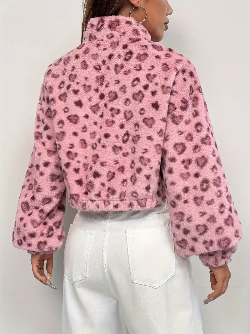 In playful pink and with a subtle polka dot pattern, this cozy fur sweater is a real eye-catcher. Made from ultra-soft plush , this half-zip jacket offers warmth and comfort with a relaxed, oversized fit for easy layering.