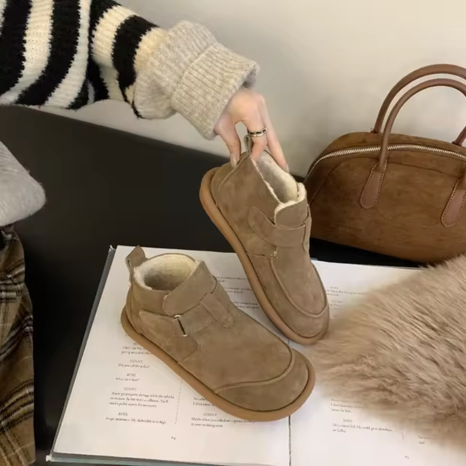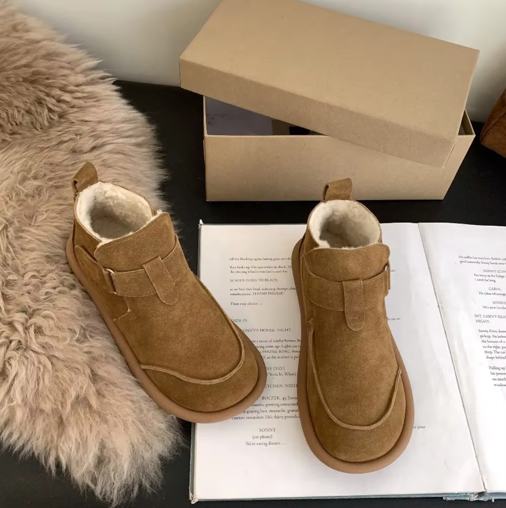 These cozy ankle boots are made from premium suede for a soft and durable exterior. The interior is lined with plush shearling for warmth and comfort , making them ideal for colder weather .