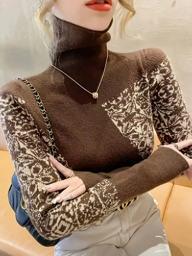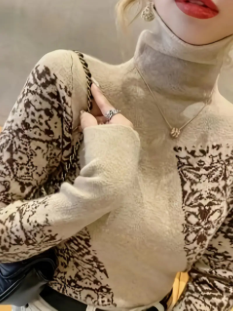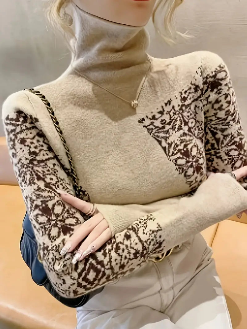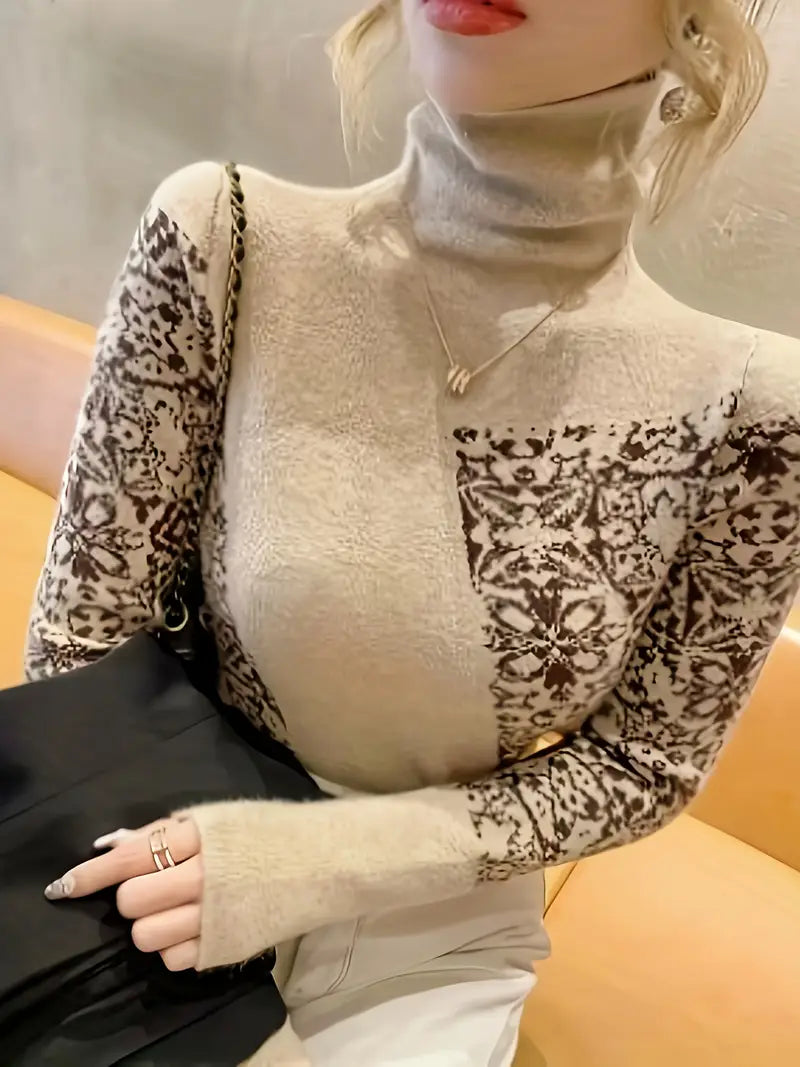 This sophisticated turtleneck sweater is made from a soft and cozy knit fabric that offers warmth and comfort for cooler days. The bold abstract pattern gives it a modern, artistic touch, making it a highlight in any wardrobe.