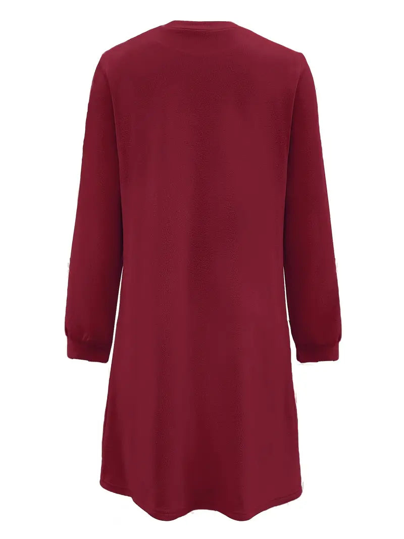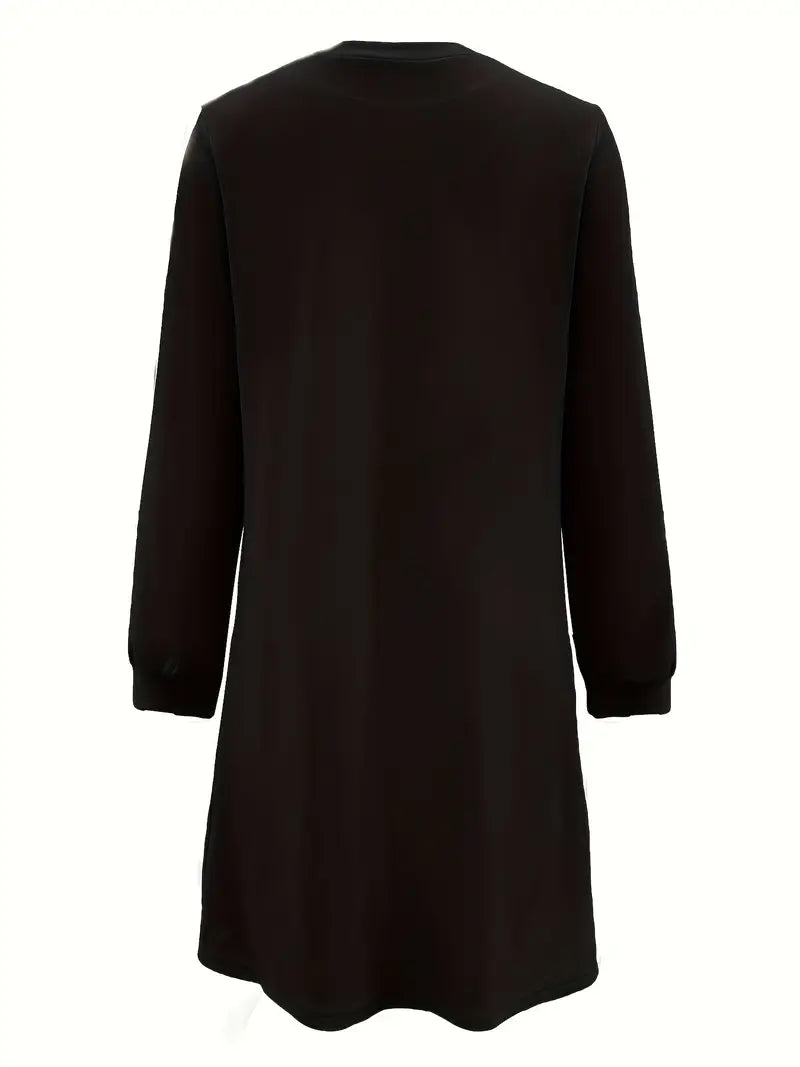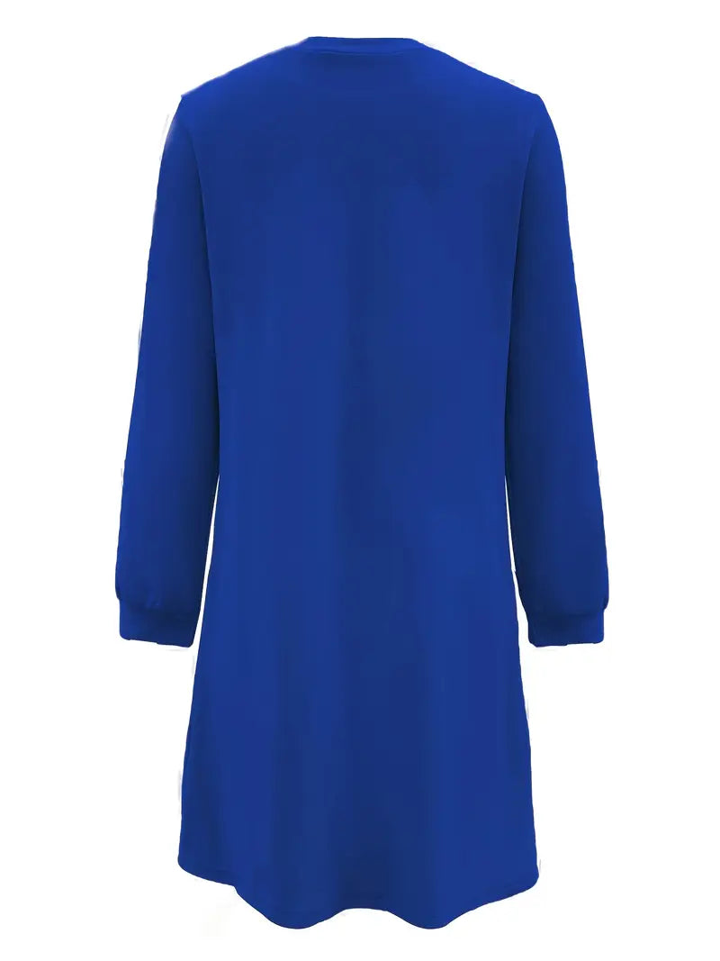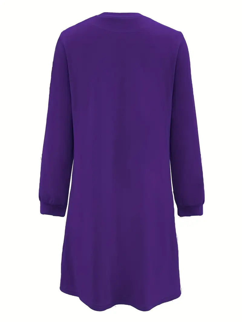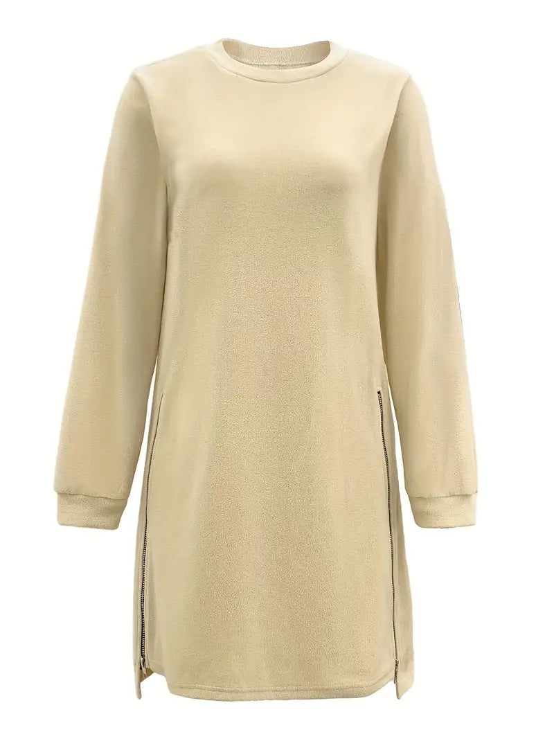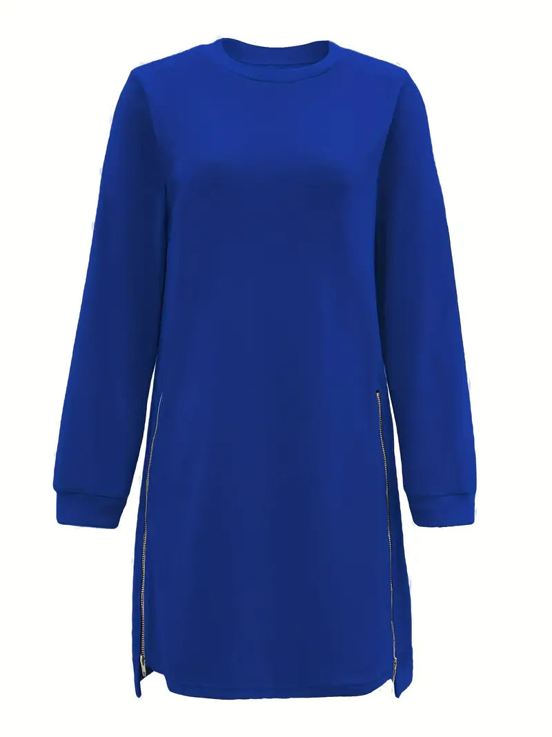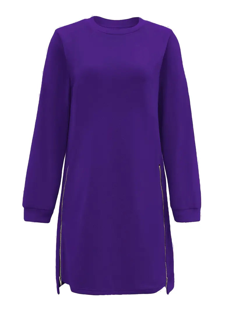 Made from a cozy, soft knit , this colorful sweater dress offers a loose , oversized fit for ultimate comfort and features stylish side zips that can be adjusted for added versatility and a touch of flair .