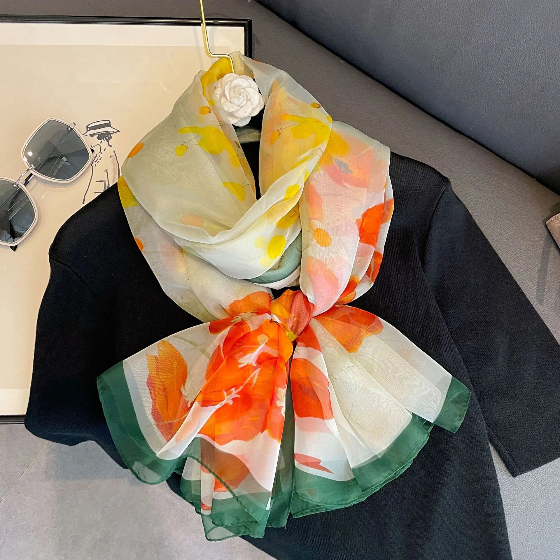 The semi-sheer material drapes gracefully and is perfect for layering over outfits for a sophisticated touch. These scarves are ideal for year-round wear. This scarf effortlessly enhances both casual and dressy outfits . Wear it as a wrap, neck or head scarf for a chic, versatile look.
