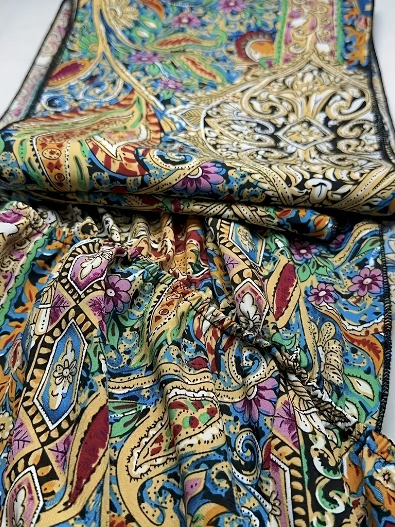 This bohemian-inspired maxi dress, featuring an intricate paisley print in earth tones, exudes effortless elegance . The balconette neckline and cross-back design add a touch of seduction , while the cinched waist creates a perfect silhouette.