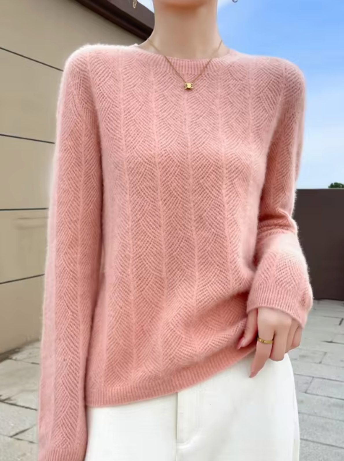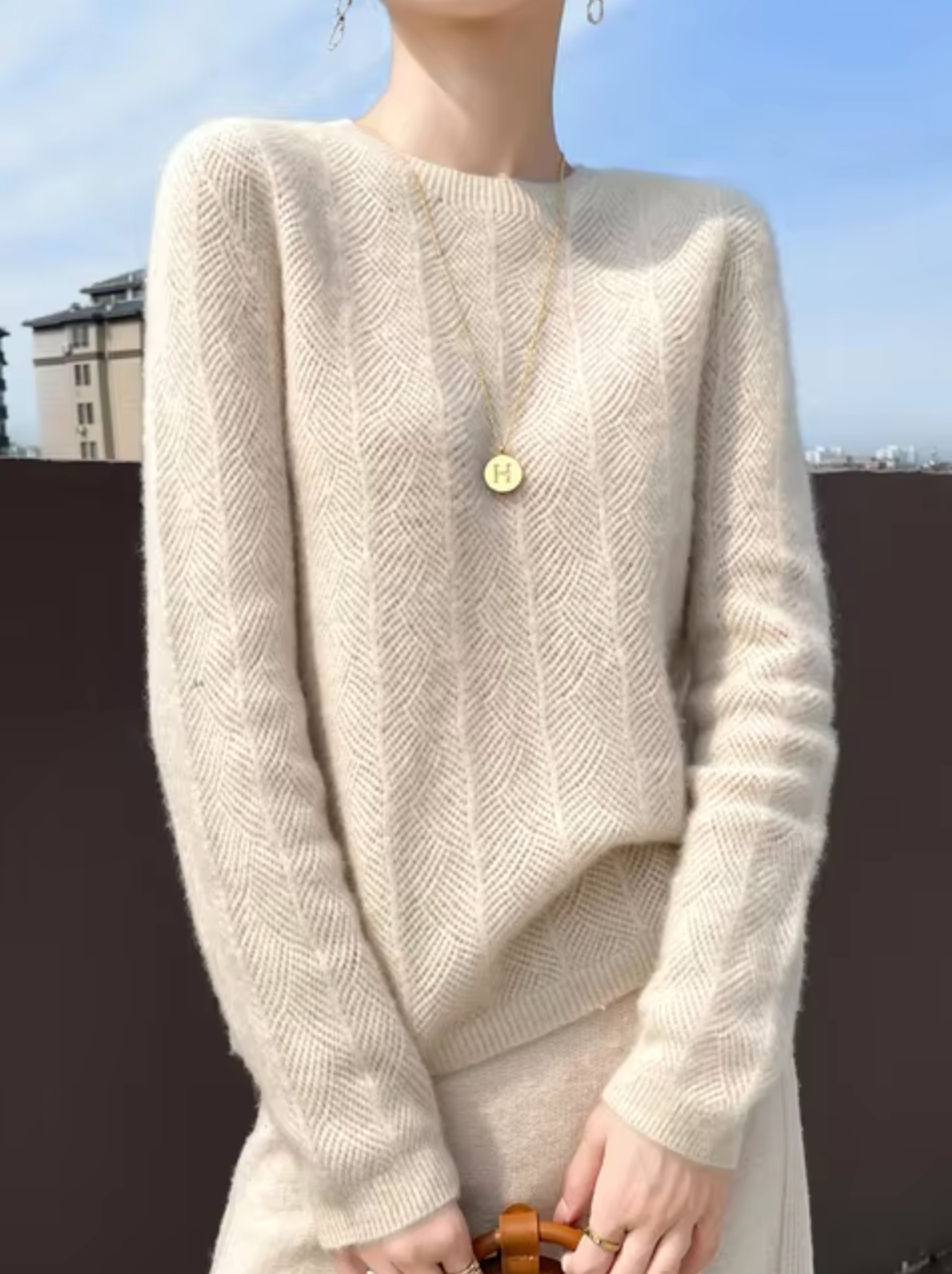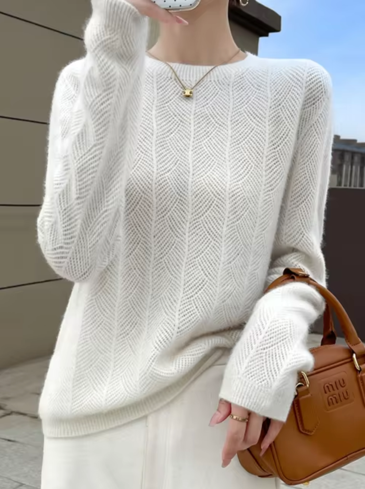 Made from 100% pure merino wool, this elegant sweater is luxuriously soft and breathable , naturally regulating body temperature - perfect for autumn and winter. The hollowed-out O-neck is a subtle, stylish detail, while the slim fit flatters the figure without being constricting.