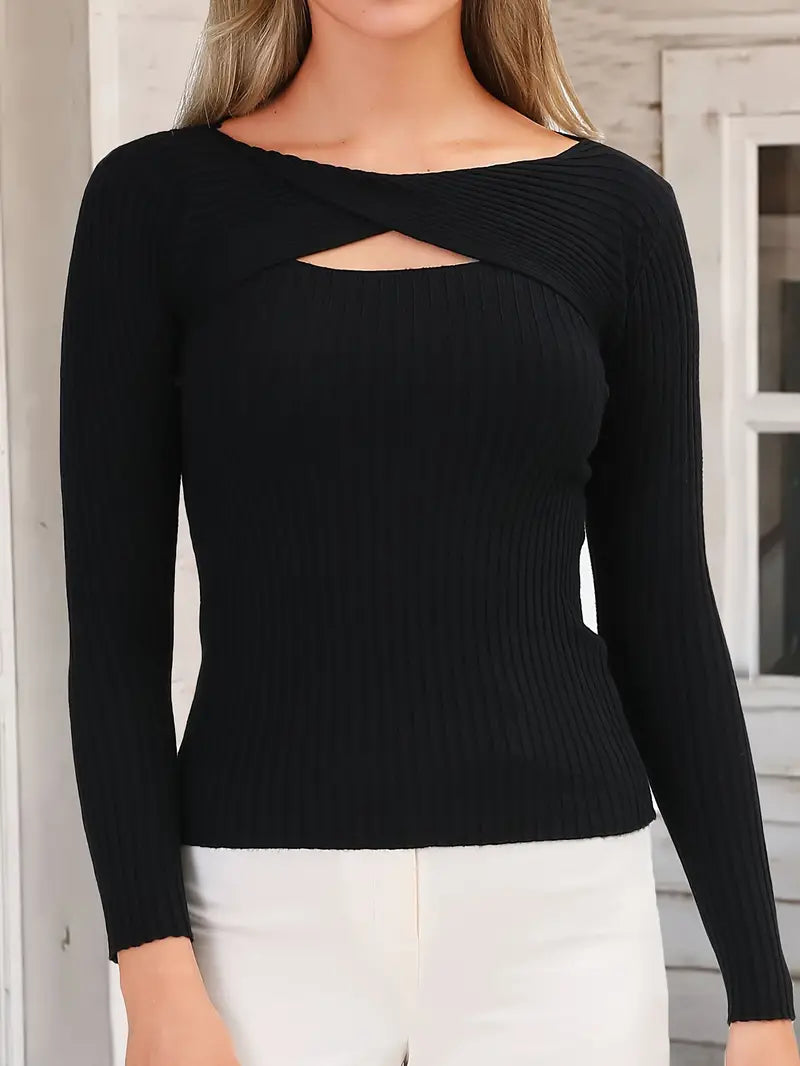 Jeya – Stylish Knitted Crossed Neckline Sweater