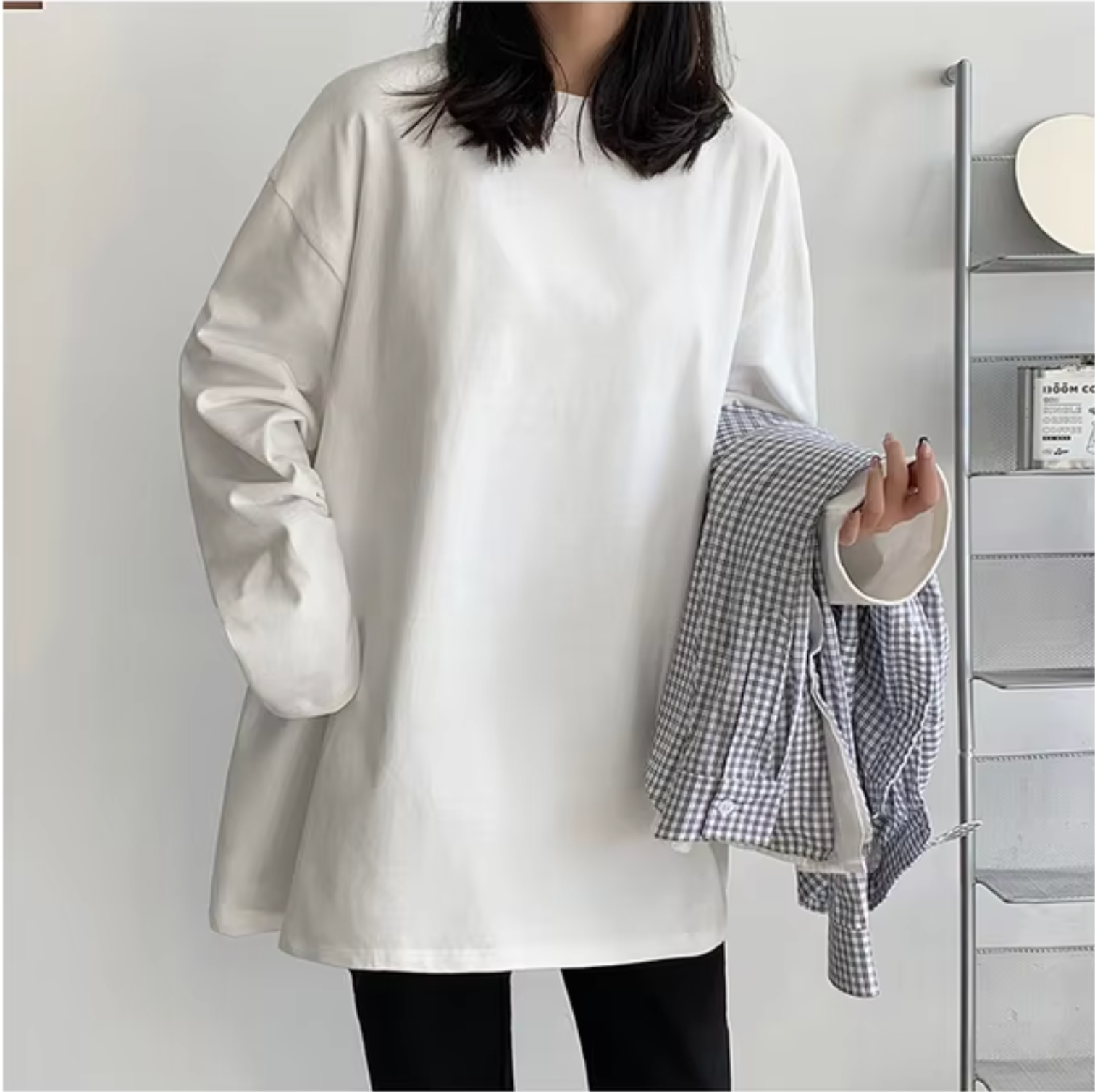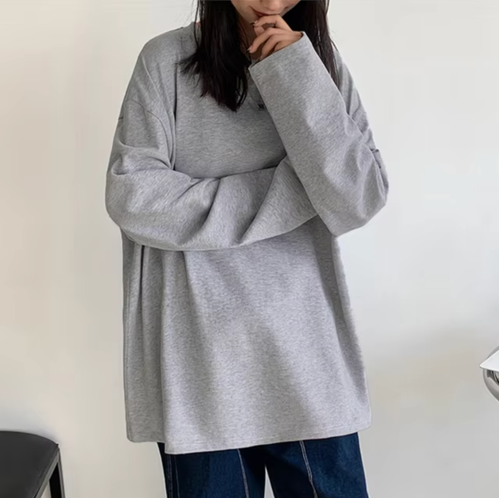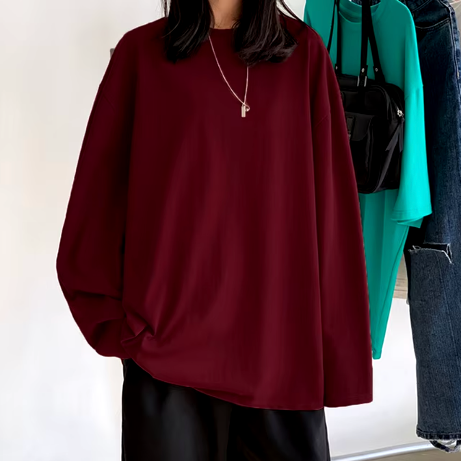 Our 100% cotton long sleeve t-shirt is the perfect piece for spring. Made from pure, breathable cotton, this oversized t-shirt offers a relaxed, comfortable fit and is ideal for layering or wearing on its own.