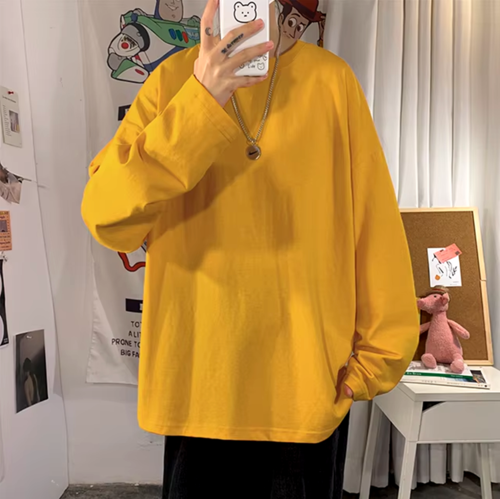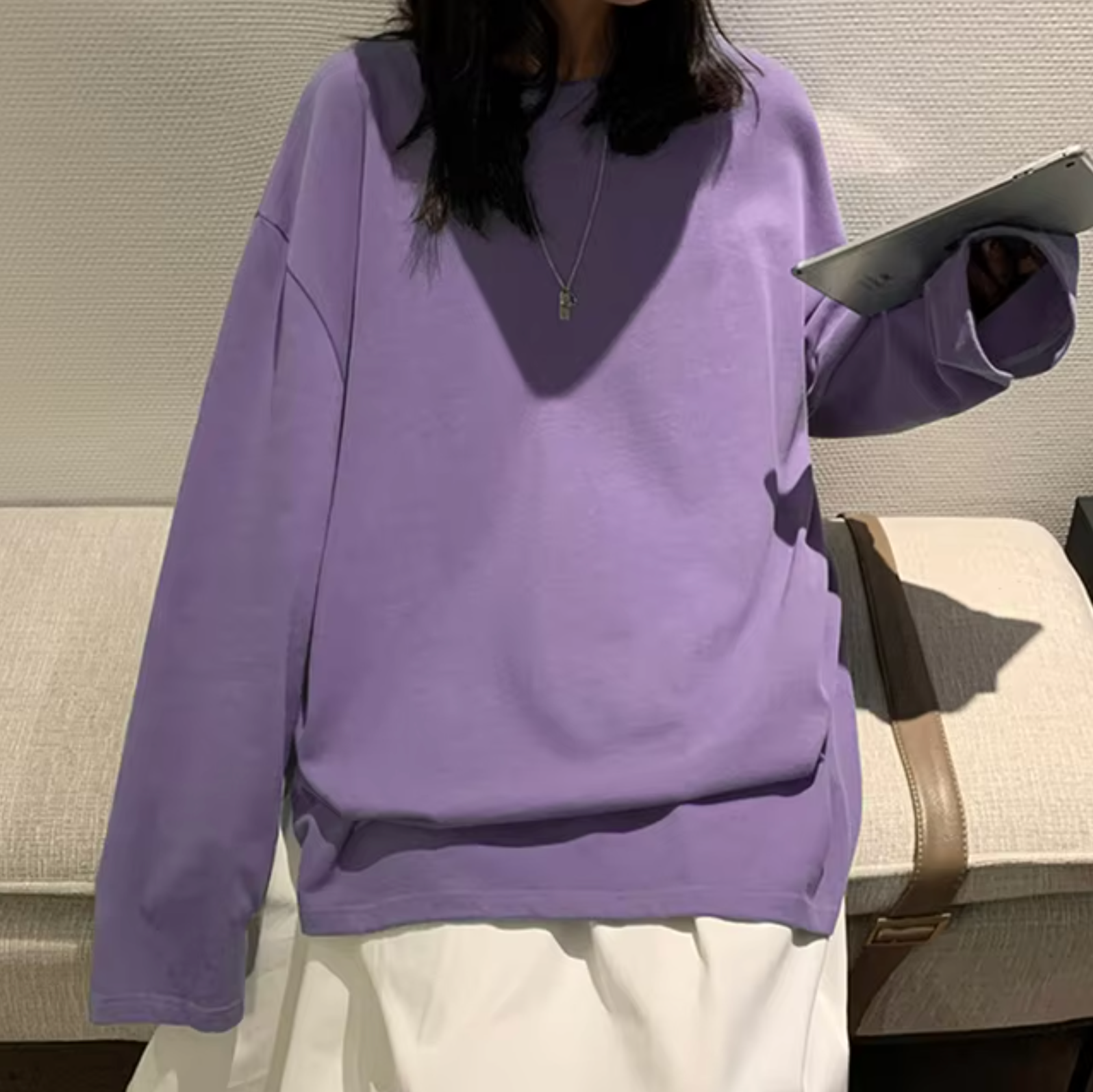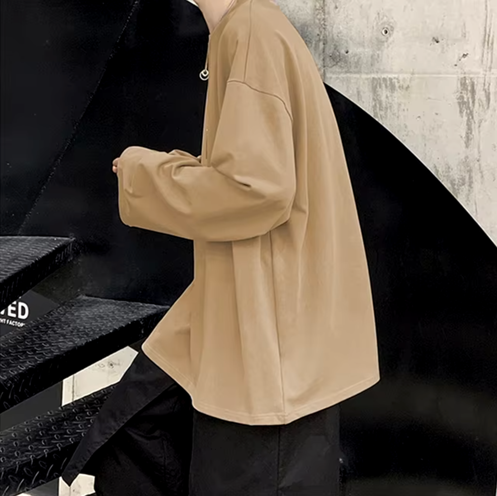 Our 100% cotton long sleeve t-shirt is the perfect piece for spring. Made from pure, breathable cotton, this oversized t-shirt offers a relaxed, comfortable fit and is ideal for layering or wearing on its own.