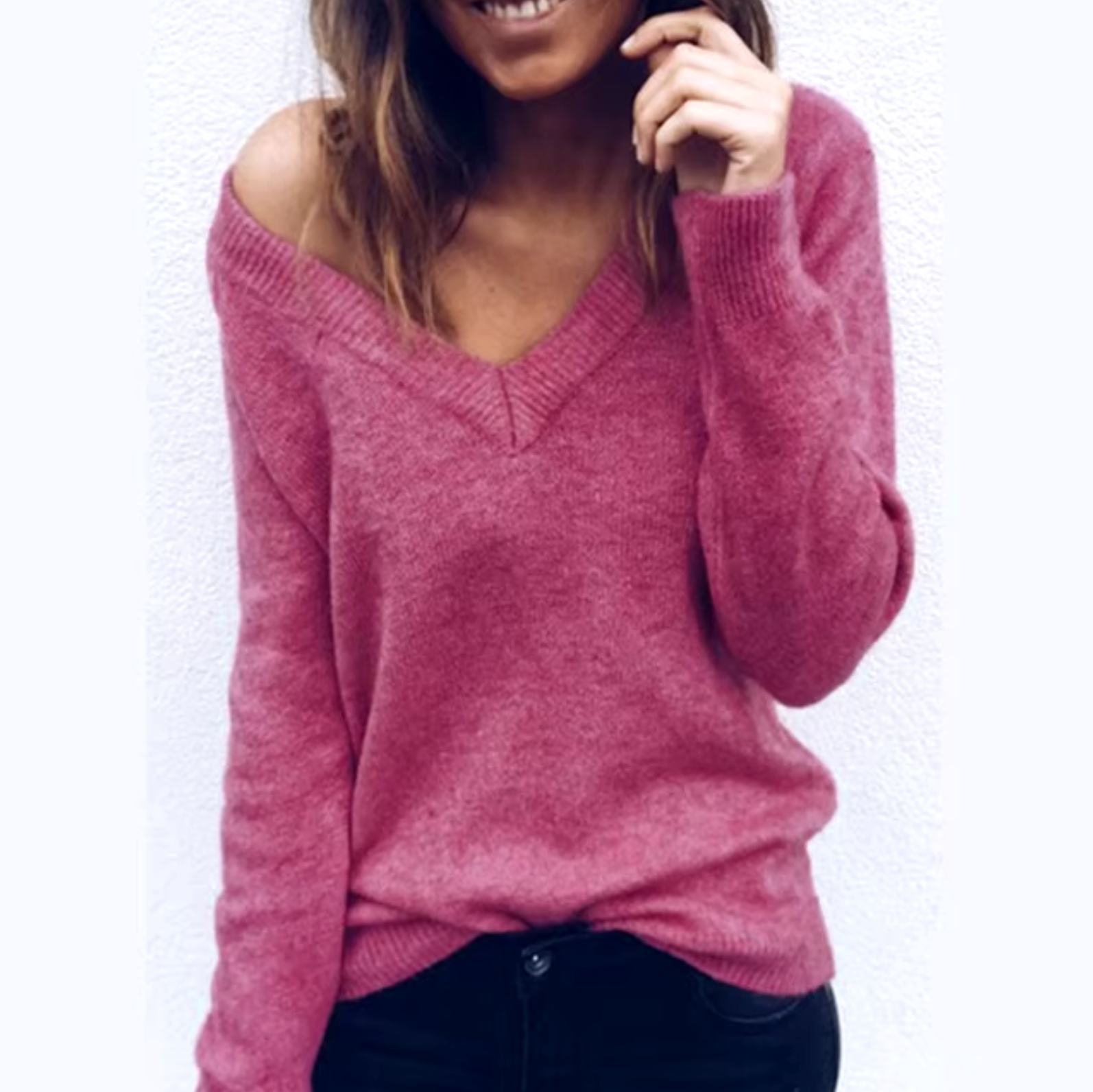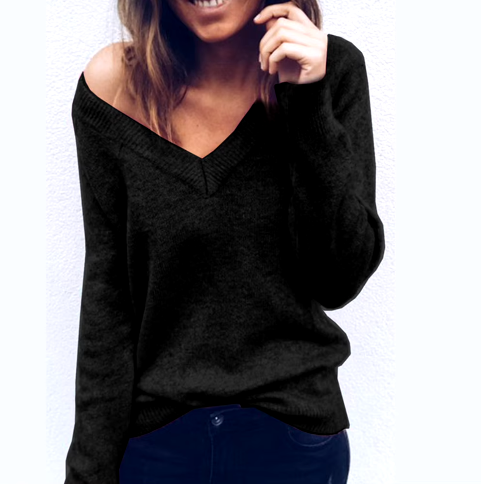 This sexy wide neck sweater is made from soft, breathable knit for a comfortable and fashionable fit. With its flattering V-neck and long sleeves, it creates a relaxed yet chic look that's perfect for spring and fall.