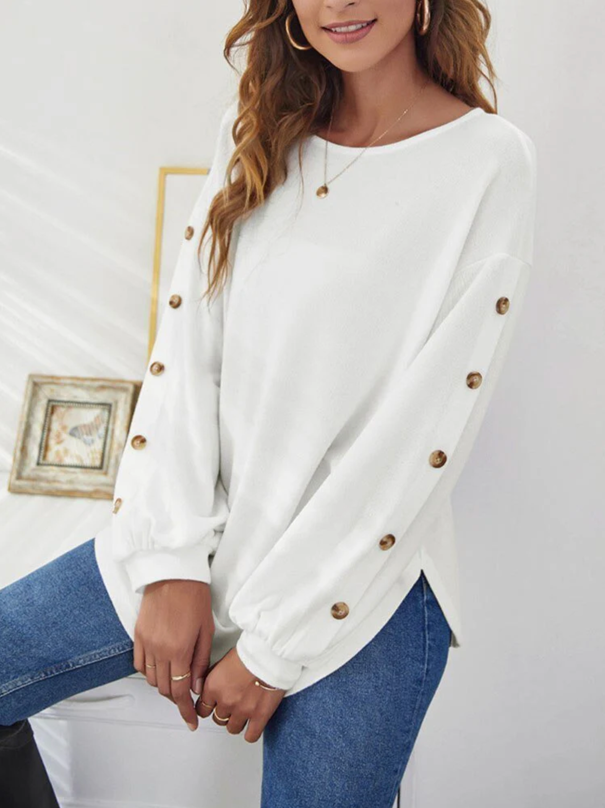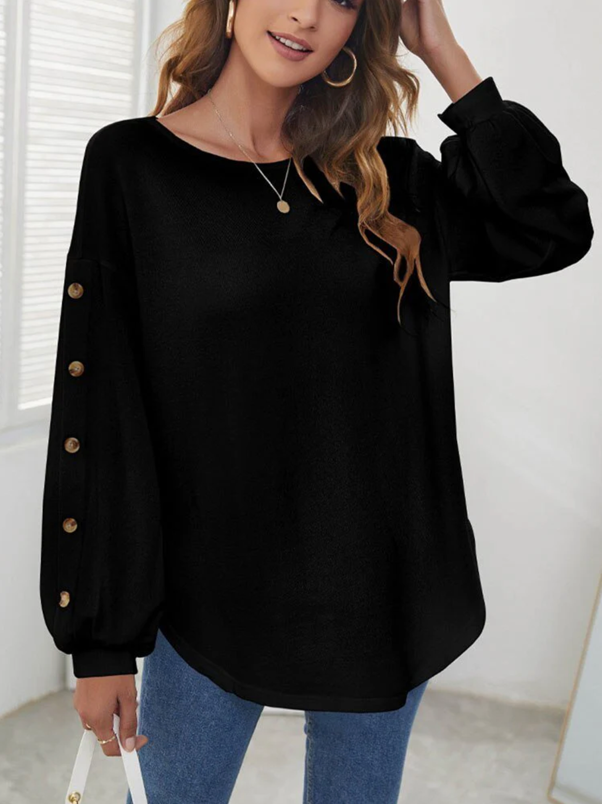 This women's autumn blouse is made from a soft and breathable fabric blend that ensures lightweight comfort for all-day wear . It features a loose fit, classic round neck, long sleeves and a button placket for a touch of effortless style.
