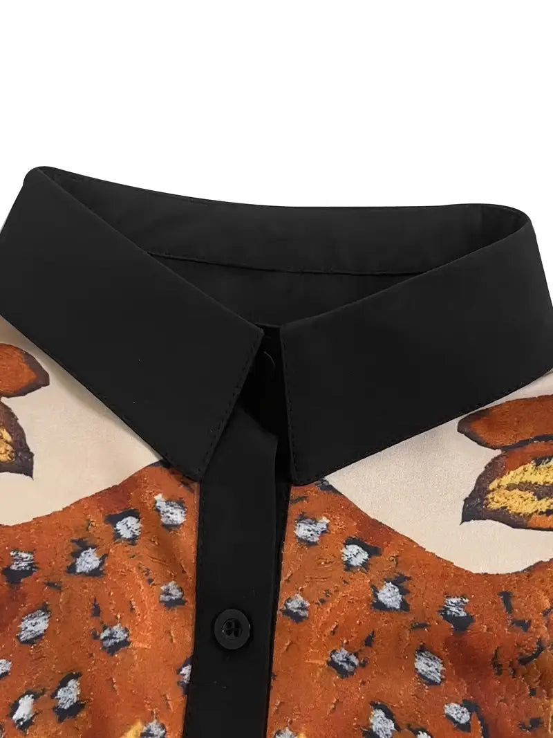 This stylish black button-up shirt features an embroidered deer motif on the chest for a touch of artistic flair. It's made from a soft, breathable fabric blend and offers a comfortable and relaxed fit, making it perfect for casual or semi-formal wear.