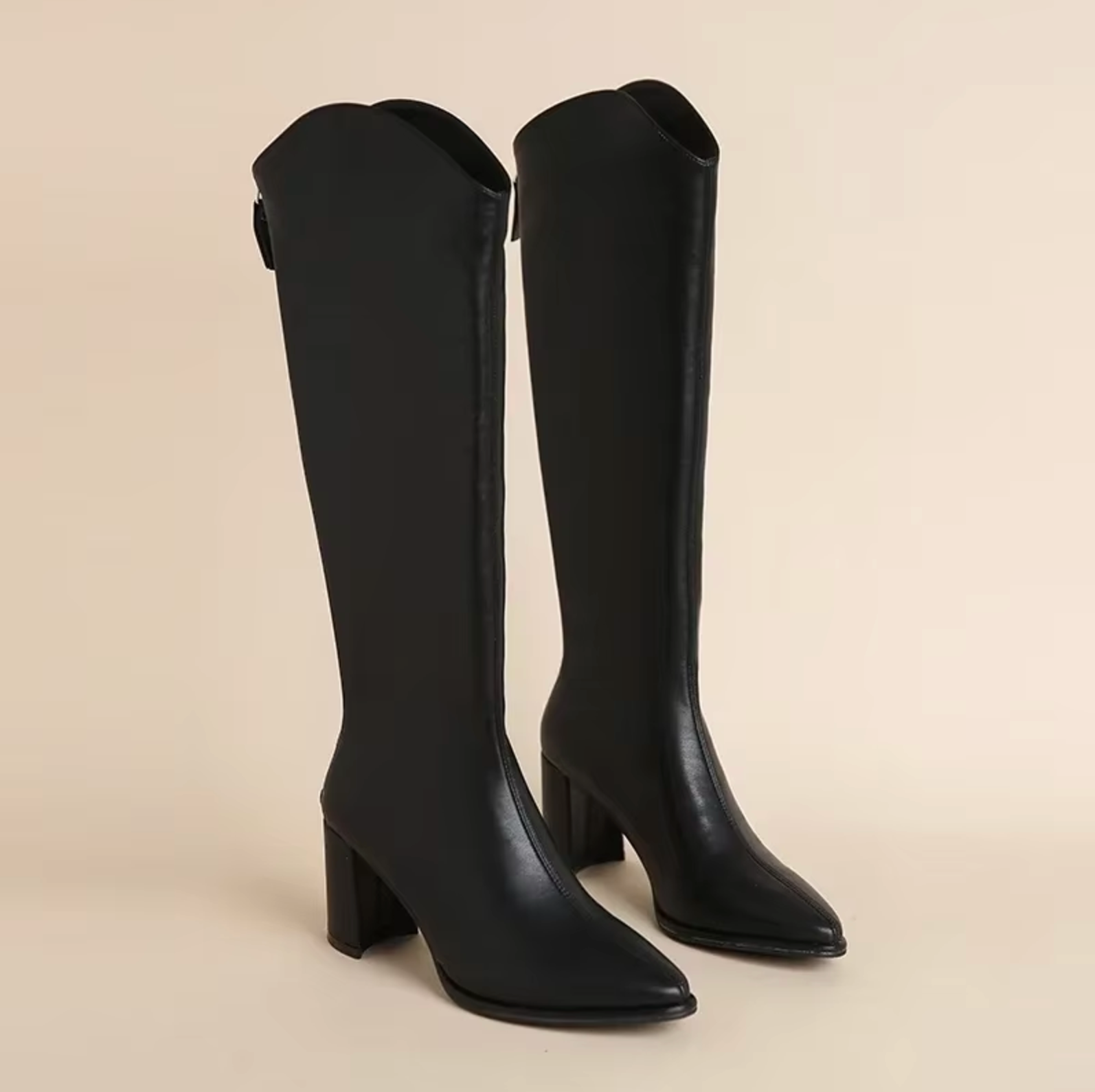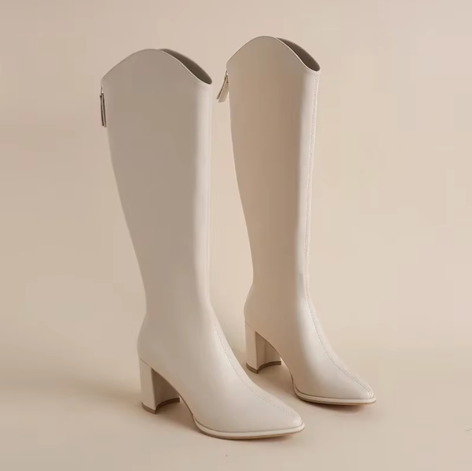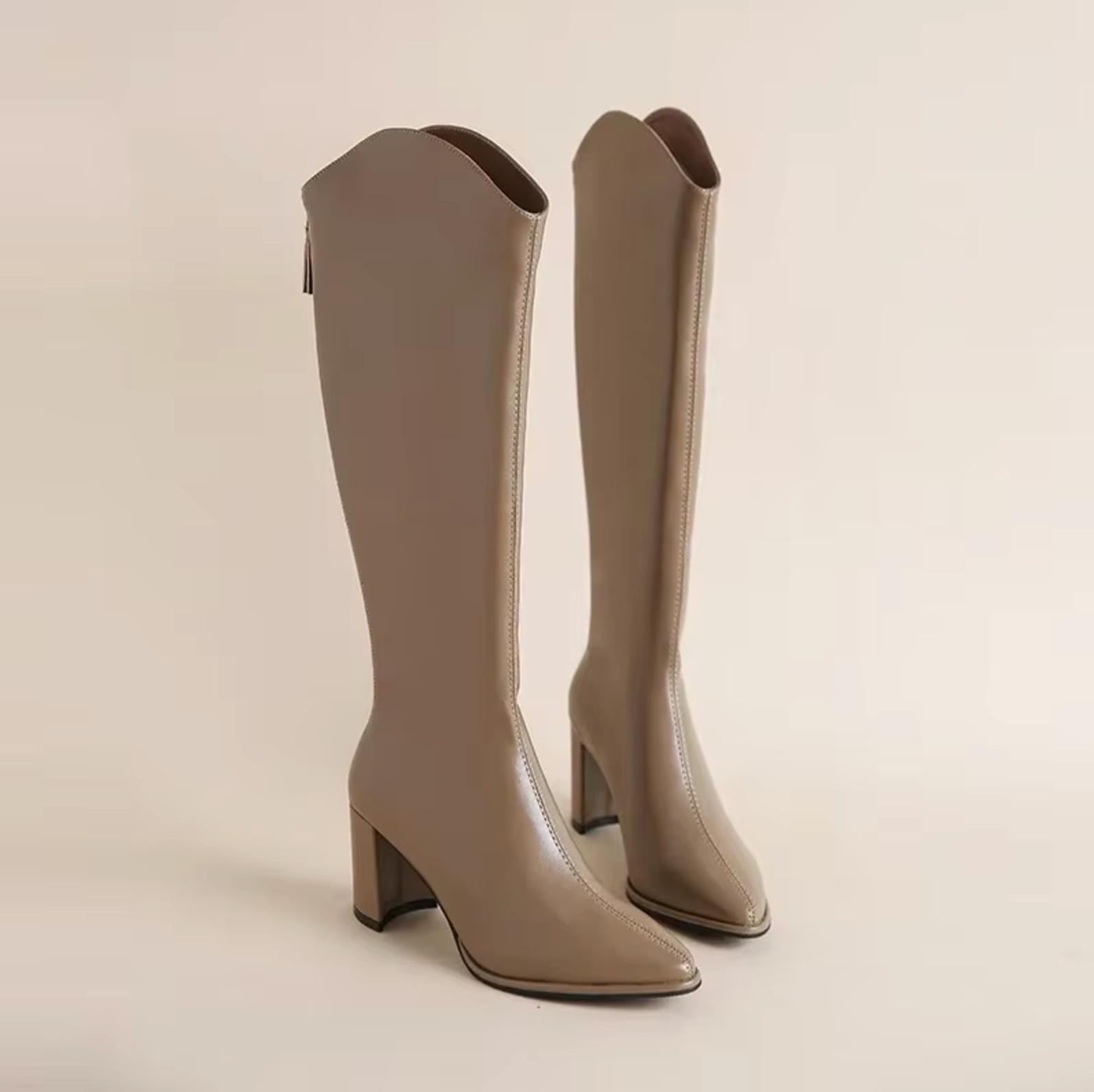 Step into the cooler season with confidence in these chic knee-high boots. Made from durable , soft material , they feature a simple yet elegant design with a practical side zip for easy wear.