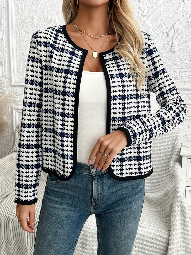 Featuring a timeless houndstooth pattern, this elegant open-front jacket is a chic choice for spring and fall. Made from soft, premium fabric , it offers both style and comfort, while its lightweight design is perfect for layering.