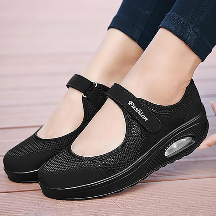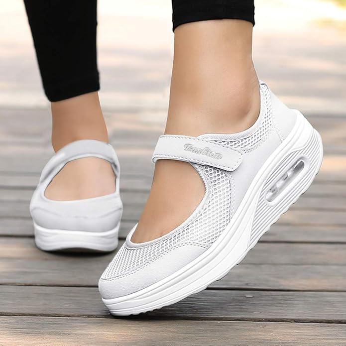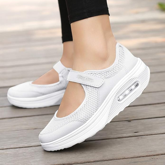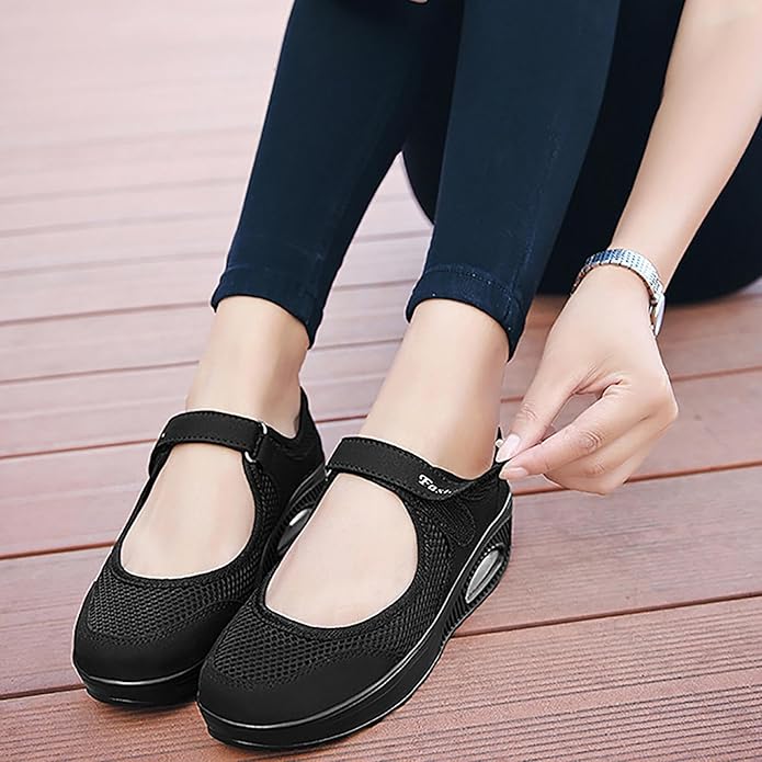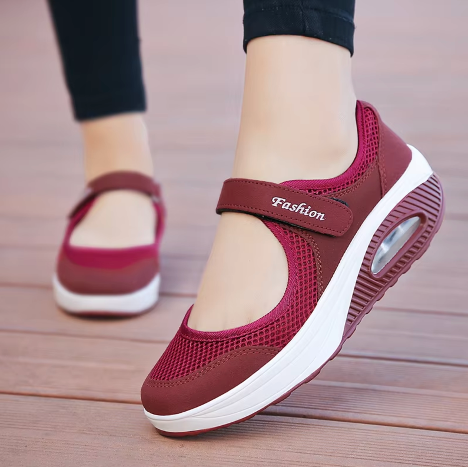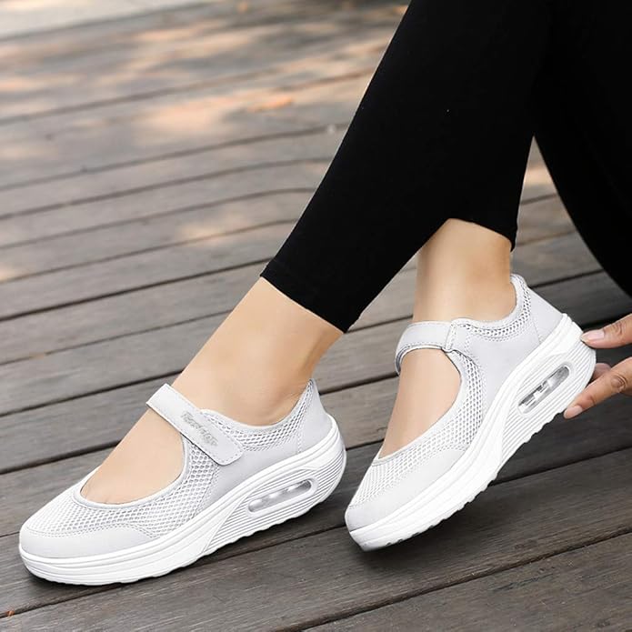 Enjoy the summer with these lightweight sneakers that will keep you cool and comfortable during your runs and daily activities. With an air-cushion sole, these shoes provide excellent shock absorption for a smooth and supported stride, while the breathable mesh upper ensures quick drying, making them perfect for warm weather and active lifestyles. The hook and loop closure offers easy adjustability and a secure fit, making your routine easier.