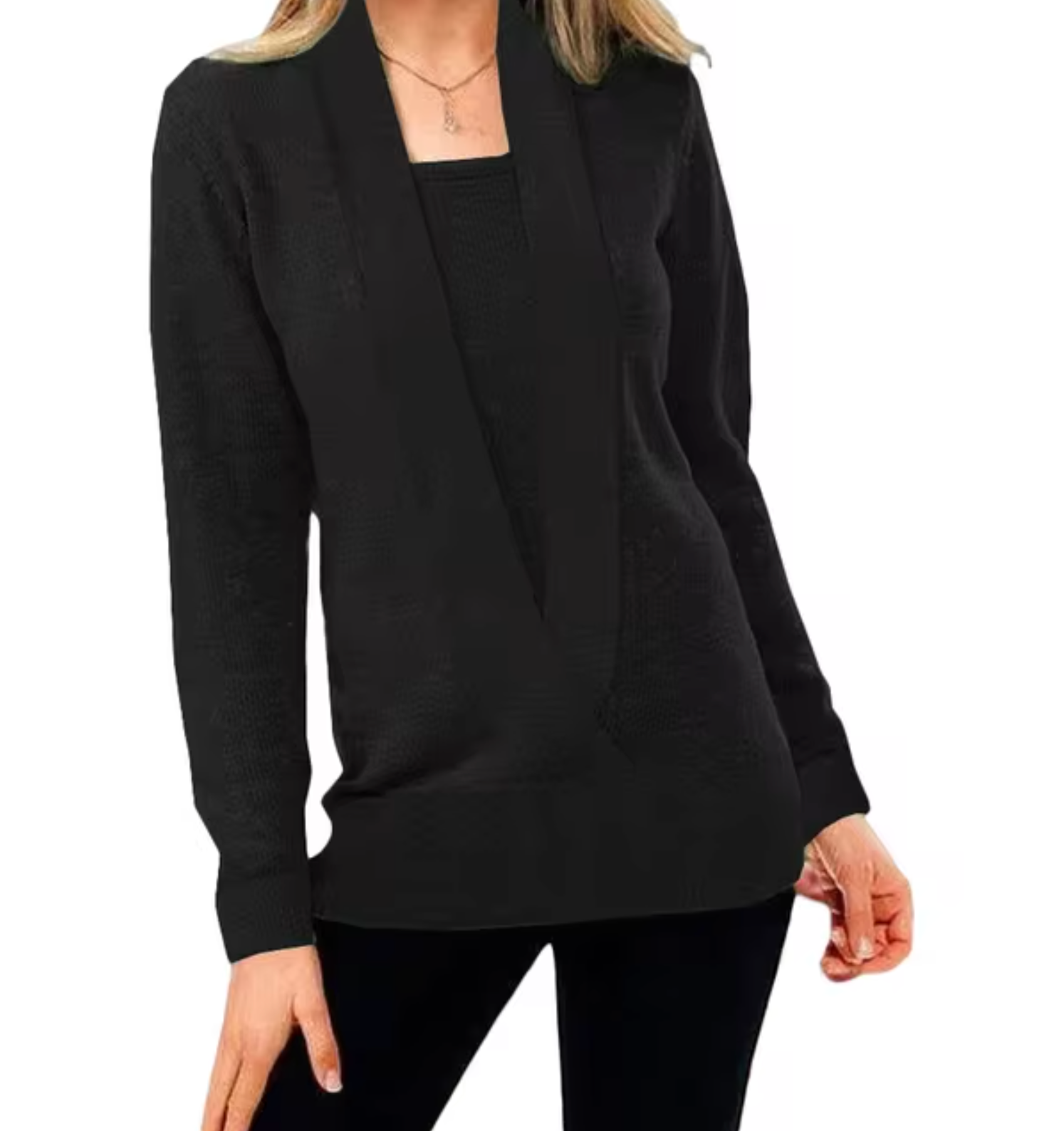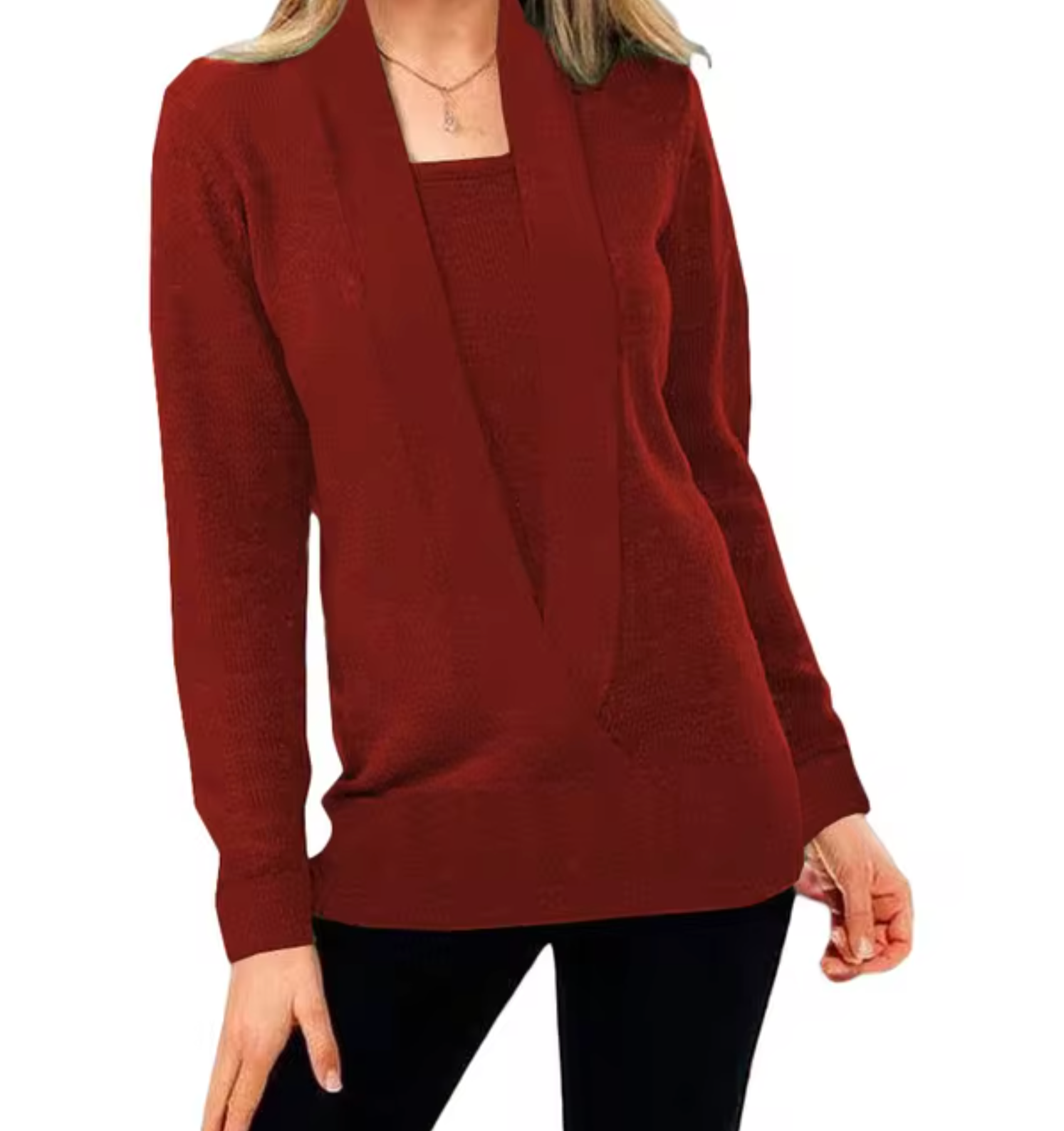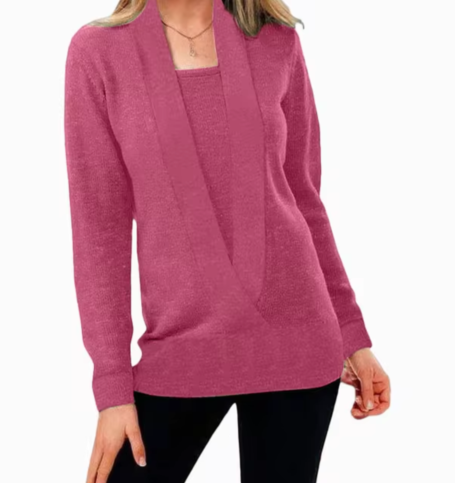 Featuring a deep V-neck and trendy two-piece, this fashionable women's pullover jacket will add a unique layer to your look . It is made from soft knit fabric and offers a cozy yet breathable feel for cooler days.