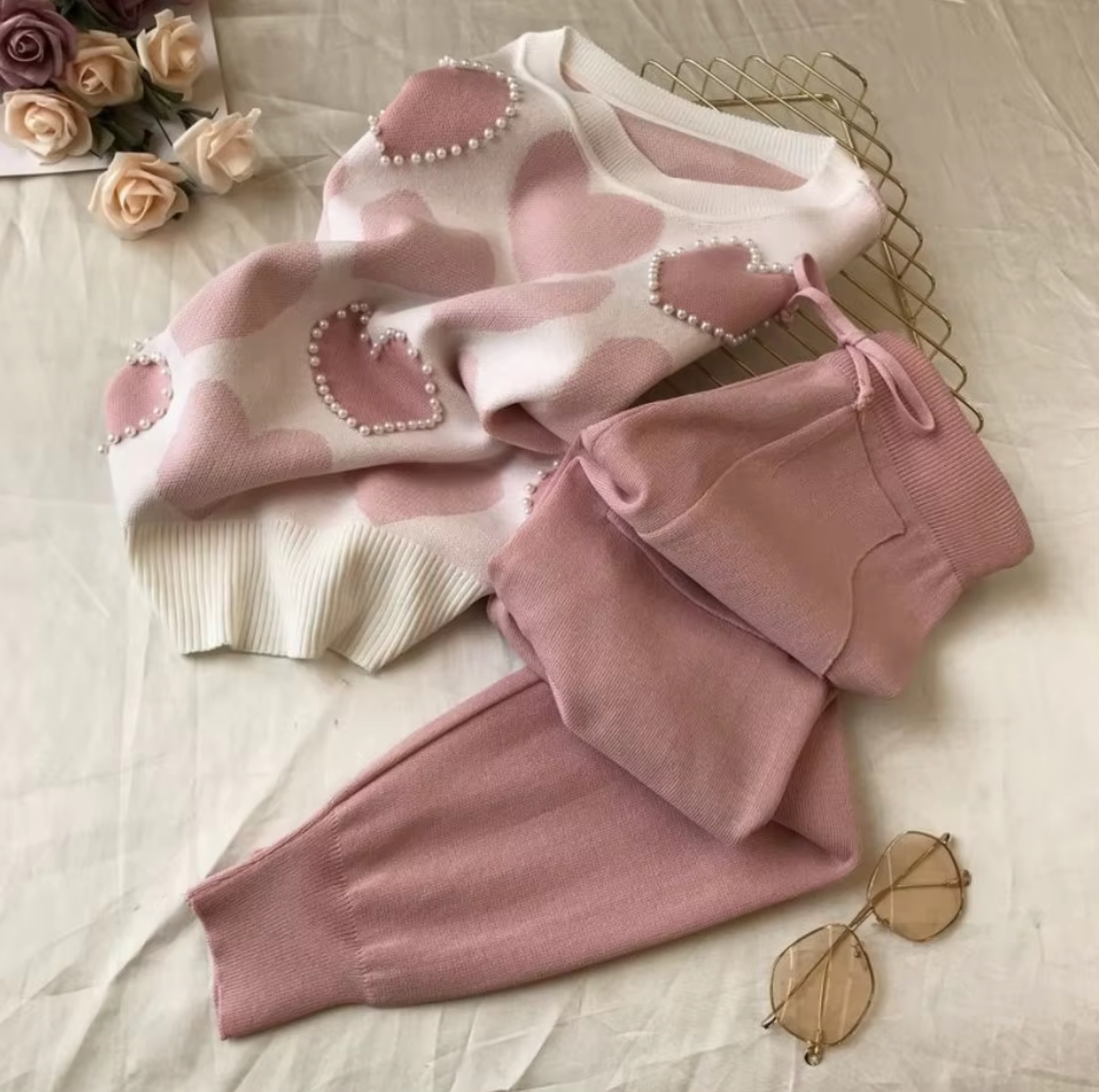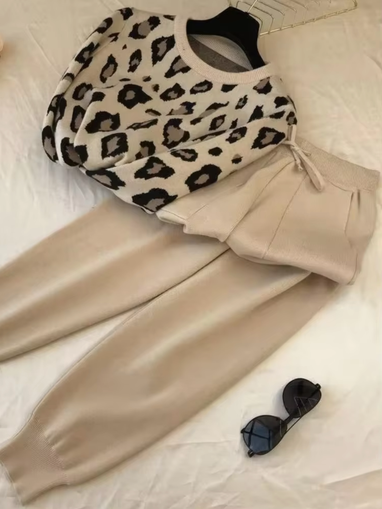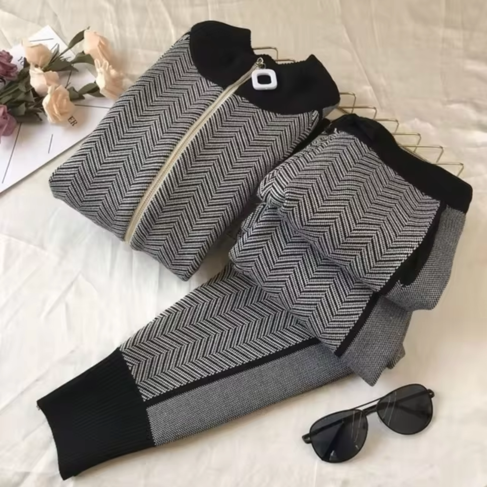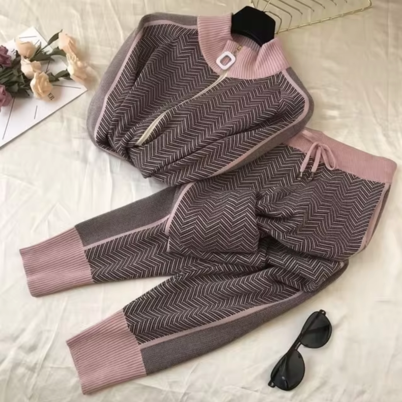 Made from soft and stretchy knit fabric , this women's tracksuit combines style and comfort for casual wear. The cardigan offers a cozy but well-fitted look, while the matching pants offer a loose fit for easy movement.