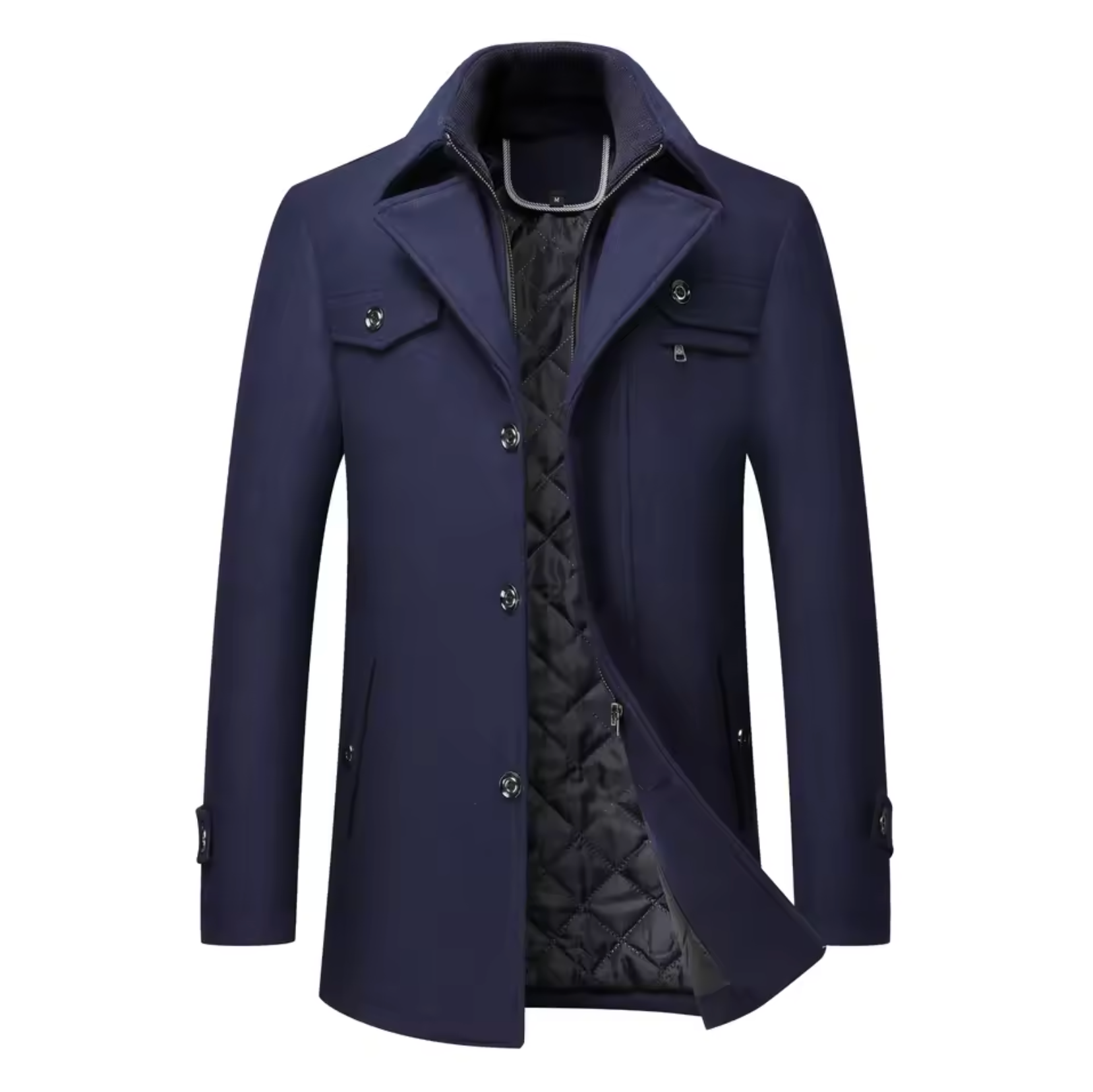 This stylish coat is made from a blend of high-quality , durable fabric and premium cotton for a balance of warmth and breathability . Designed for a tailored fit , it features a quilted lining for extra insulation in colder months.