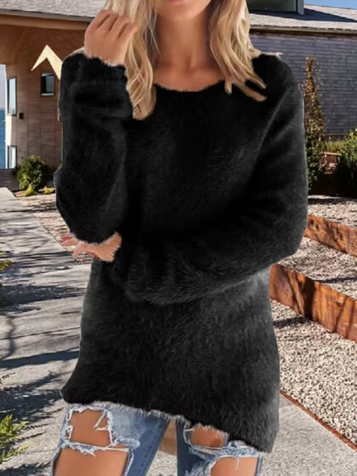 With its solid color design and timeless style , this sweater is versatile enough to match both casual and more elegant outfits, offering excellent warmth and a chic, feminine look for cold days.