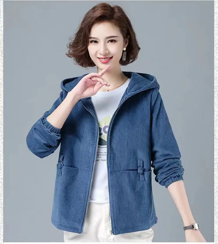 This women's jacket is made from high-quality corduroy fabric that feels soft and textured , providing a warm layer for cooler seasons. The loose fit with adjustable drawstring waist ensures comfort and style and flatters different body types.