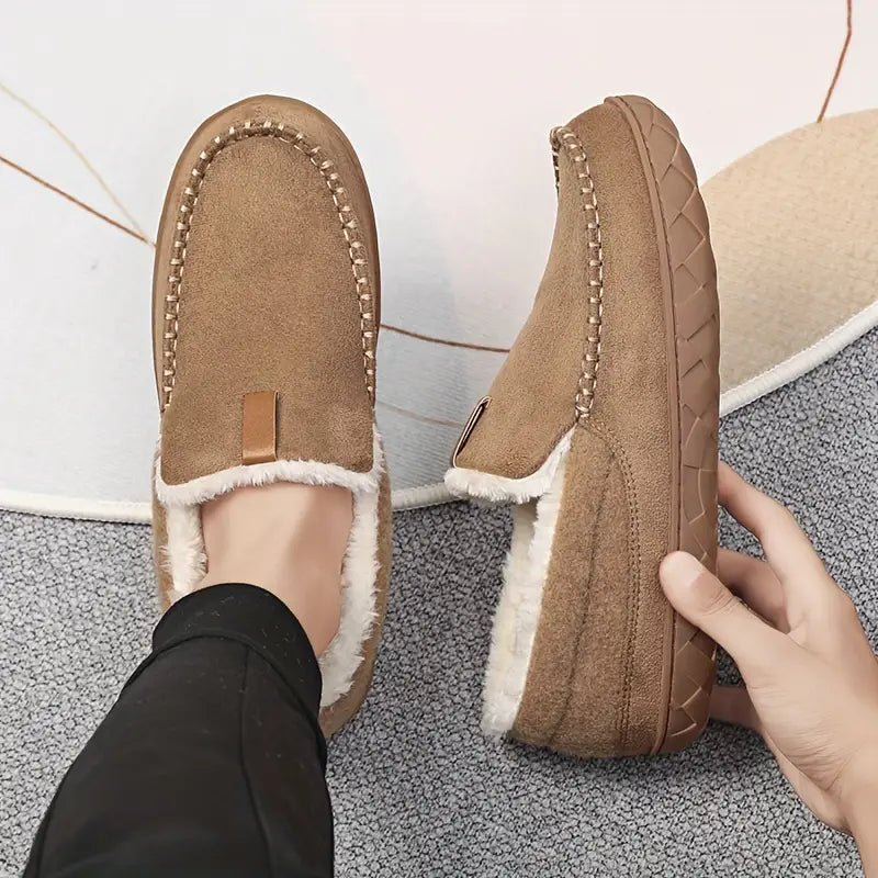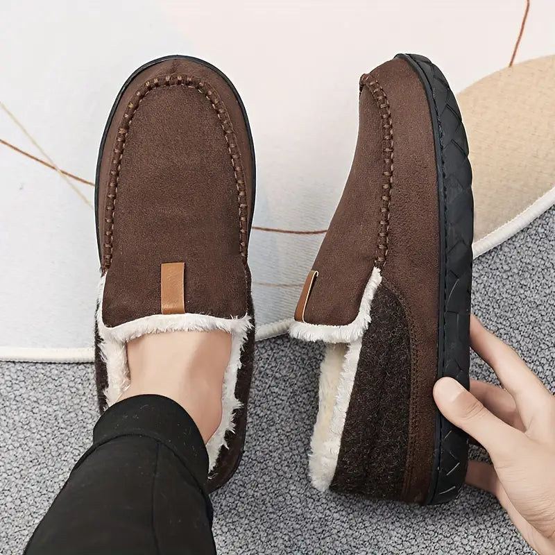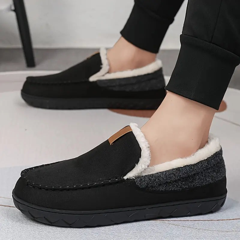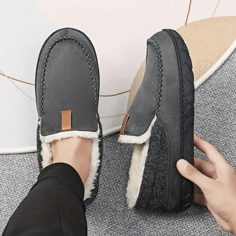 Whether you're lounging indoors or heading outside for errands, these loafers offer both style and functionality. The soft outer material and cushioned sole make them an excellent choice for men looking for a warm, comfortable and practical footwear option during the colder months.