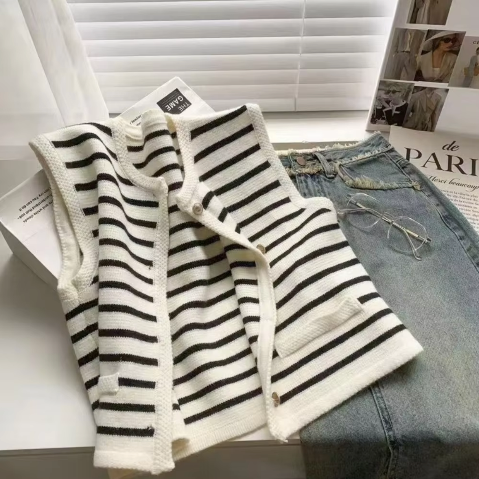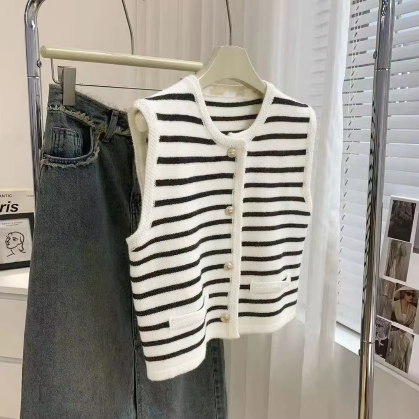 With its classic stripes and vintage-inspired design, this vest will add a chic touch to any outfit. The durable knit construction is ideal for cool, dry days or as a stylish layer indoors.