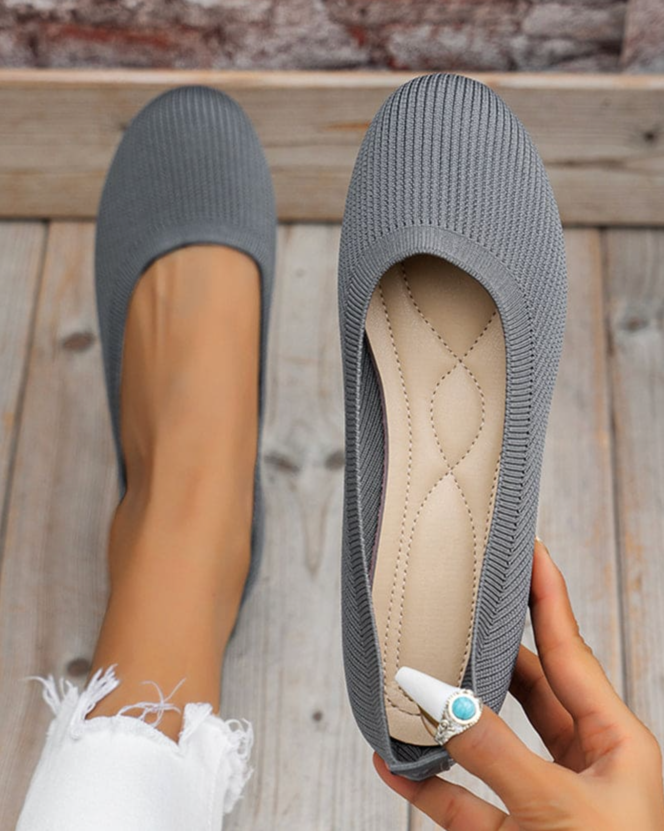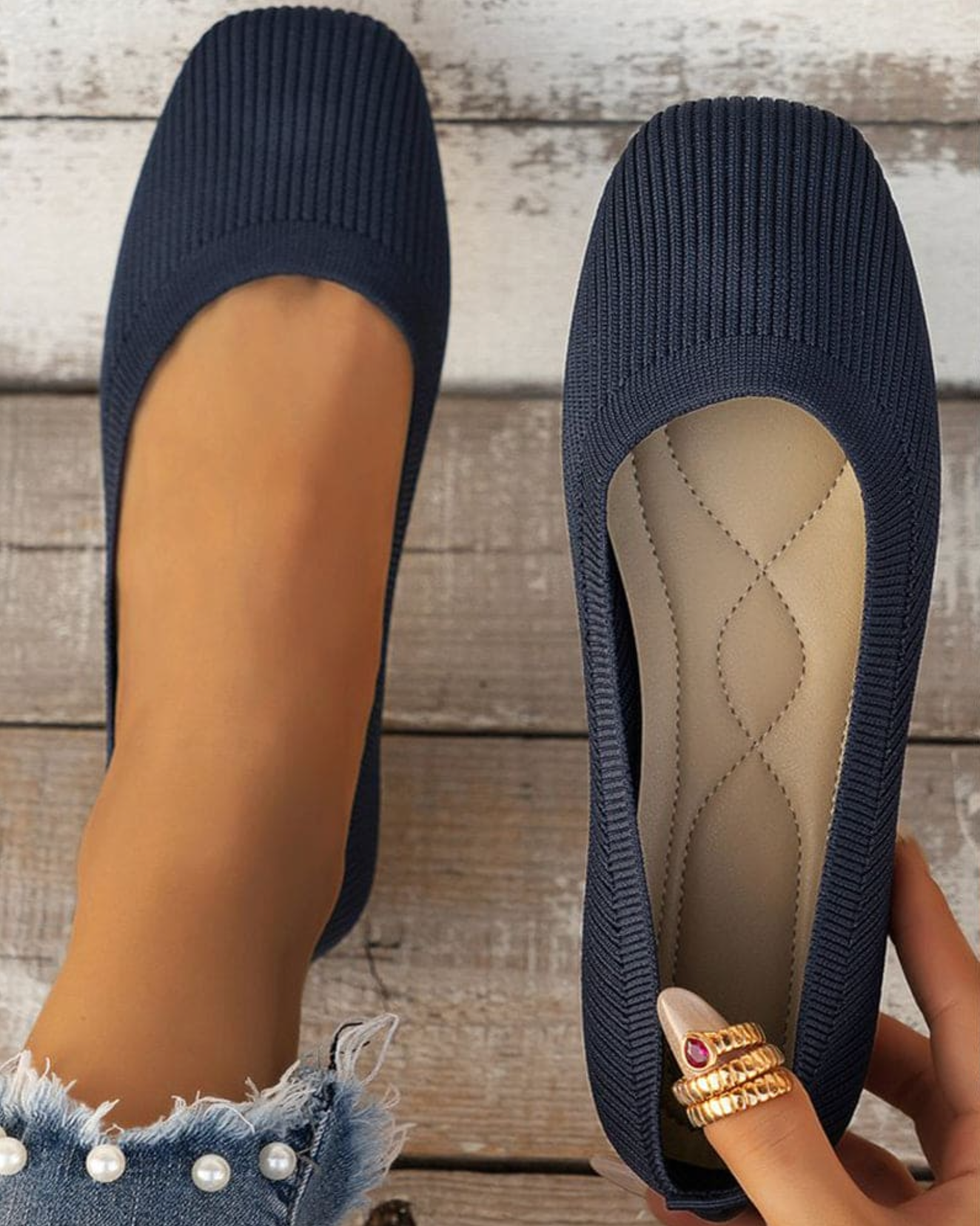 Combining comfort and style , these women's flat casual shoes feature a breathable mesh knit upper for a lightweight feel. Featuring a trendy square toe and flat sole , they offer a sleek, modern silhouette that 's perfect for all-day comfort.