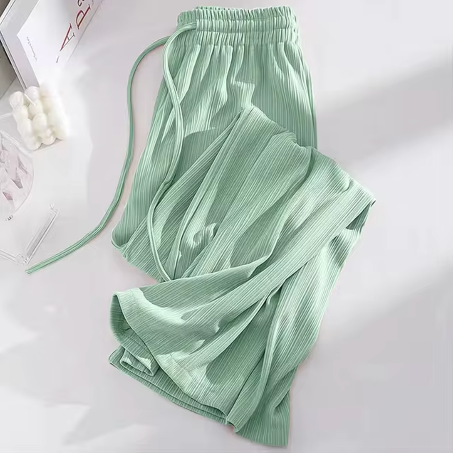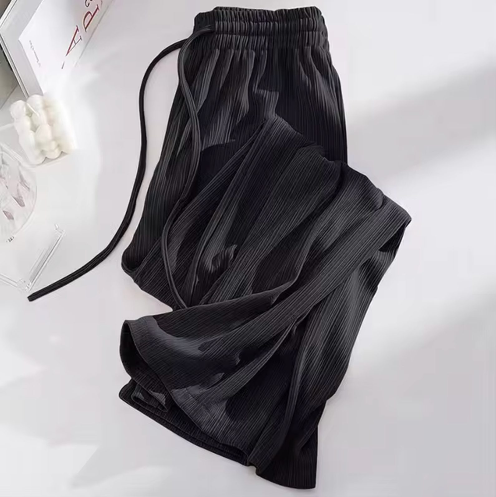Stay cool and stylish this summer with these Ice Silk straight pants, made from lightweight, breathable fabric with a refreshing silky feel . Featuring a high waist and wide leg , they offer a flattering, flowing silhouette that exudes effortless elegance .