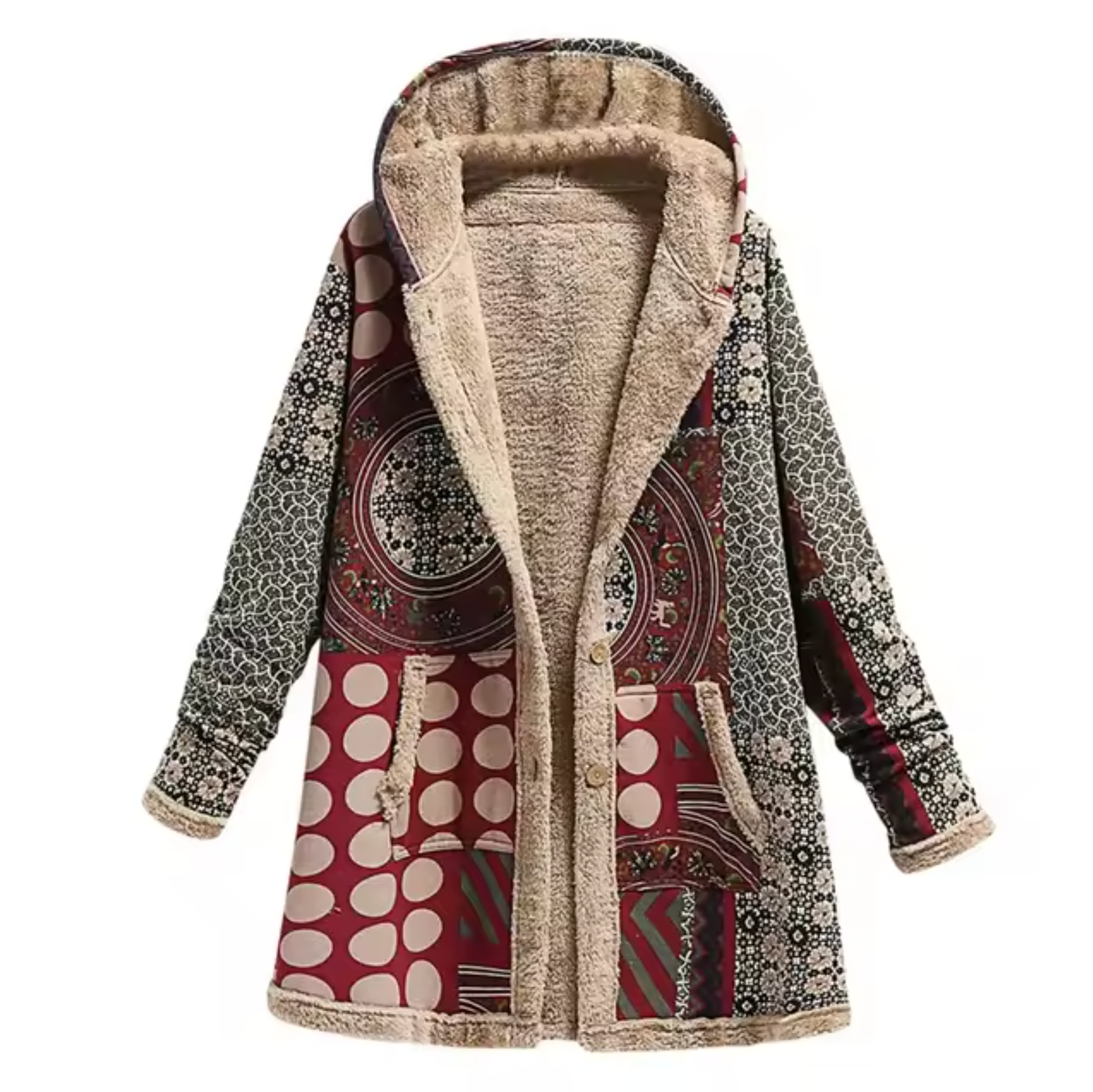 This hooded winter jacket combines cozy cashmere and durable cotton-linen to create a thick, warm, essential piece. The spliced design offers a unique, retro-inspired look with a loose, relaxed fit that's perfect for layering over sweaters and other cold-weather pieces.