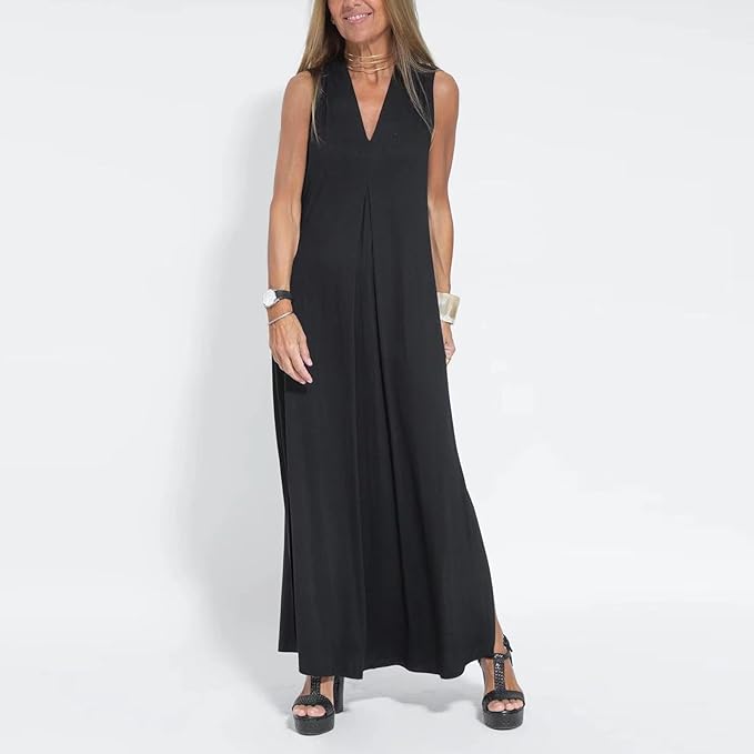 Effortlessly elegant and comfortable , this wide-leg jumpsuit is made from soft, breathable jersey fabric that drapes beautifully. The deep V-neck and flowing silhouette create a relaxed yet sophisticated look.